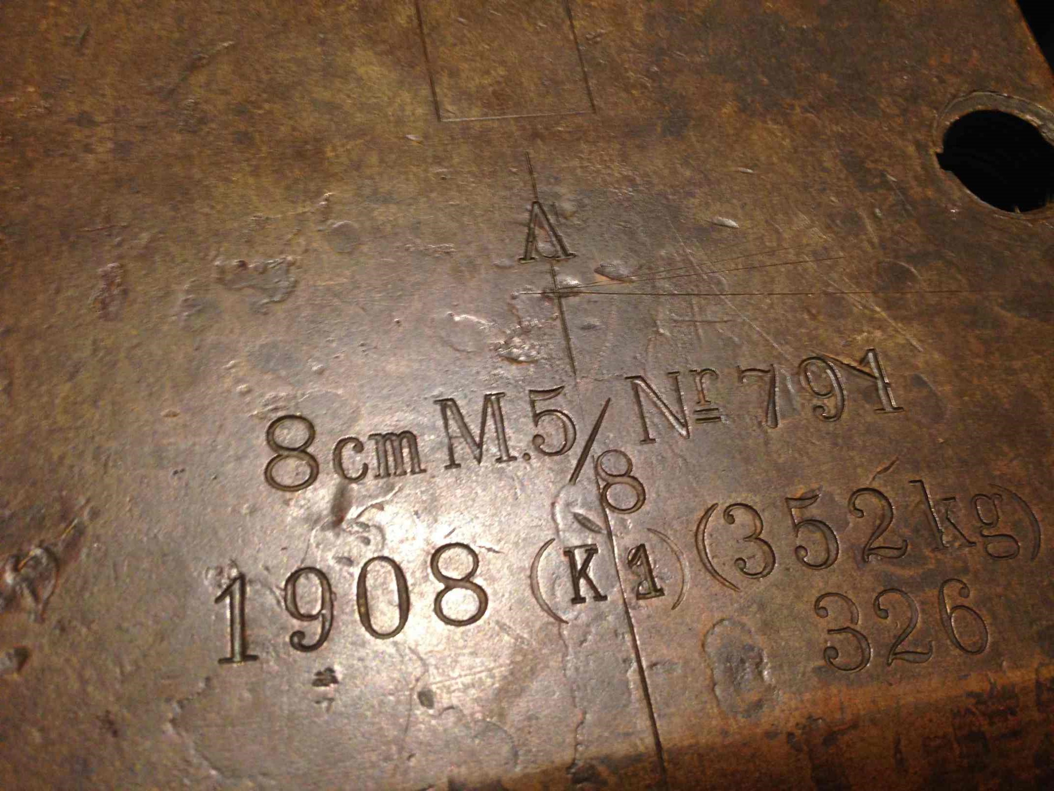 Breech markings : 8cm M.5/8 Nr. 791 - 1908 (k1) (352 kg.) - 326