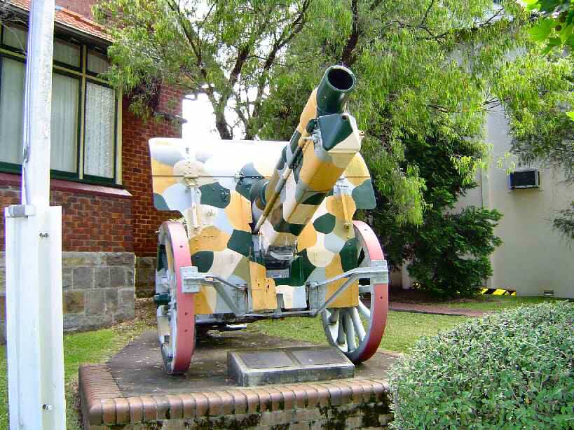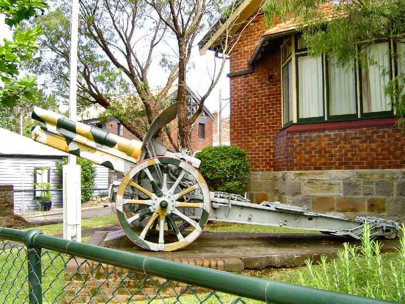 On the description plate, we learn that 'This German 150mm Howitzer n°1177 was captured at the Ferme de Lamotte, near Estrées in France, in October 1918 by the 20th batallion A.I.F., and offered to Hunter's Hill town in 1922 in recognition to its contribution to the war'.