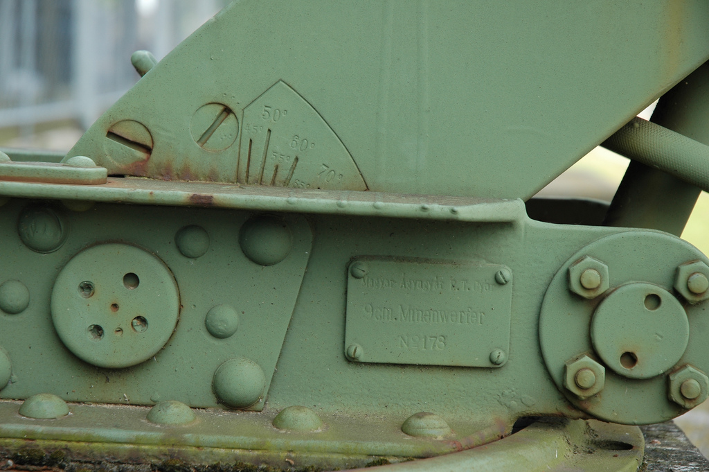 On October 11th 1917, the prototype proposed by the Hungarian Gun Factory (Diosgyor) was declared the winner of a test campaign that also examined prototypes of Skoda, Böhler and Austria. The '9 cm MW M17' had seduced the commission particularly thanks to its system allowing a lorward tilt of the barrel for te breech loading process without modifying the vertical aiming, as well as its wide horizontal aiming angle range (90 degrees each side). However, it had no recoil recuperating system, and its stability was only obtained trough the grooved bore barrel and the steel platform.