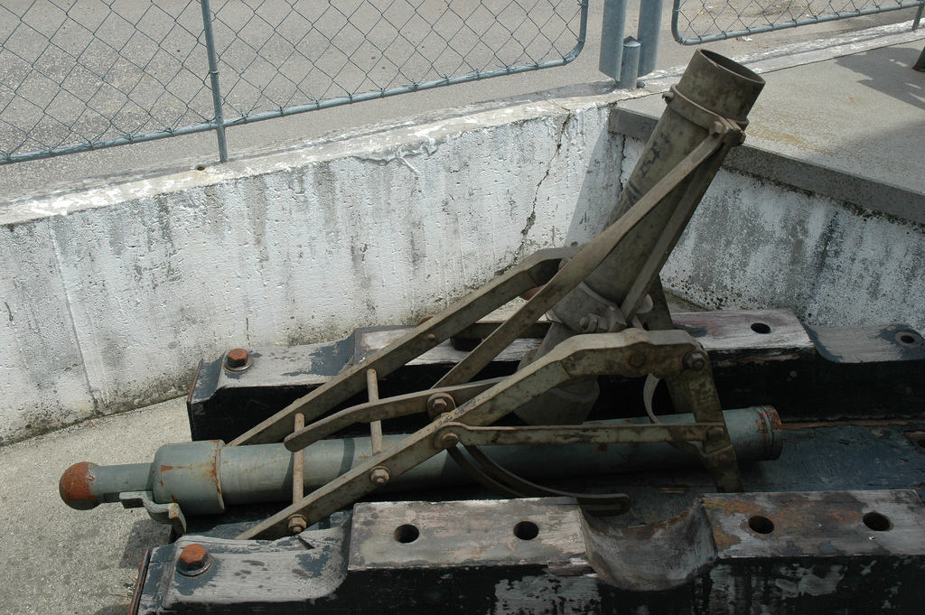 The barrel was assembled on a small and light 4-legs trestle made of steel bars, fixed on a wooden platform made with 7 planks, and the vertical aiming (sometimes helped by a wheel) was measured by a simple prototractor arc.