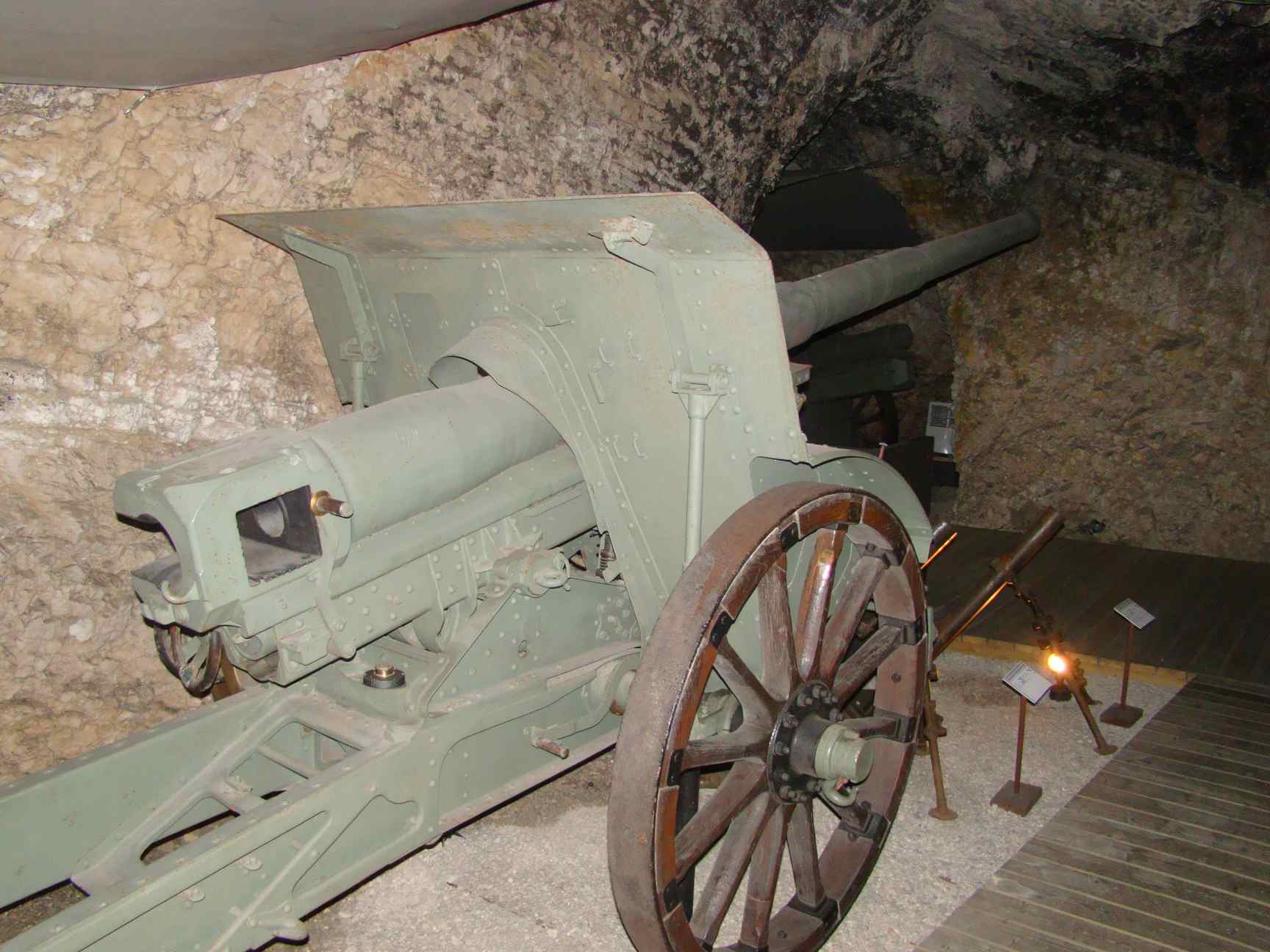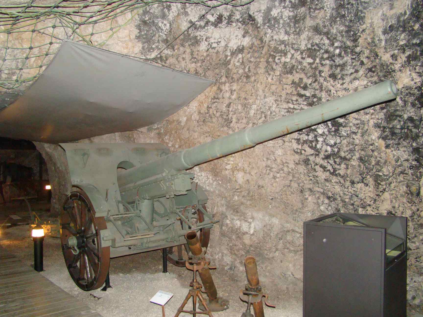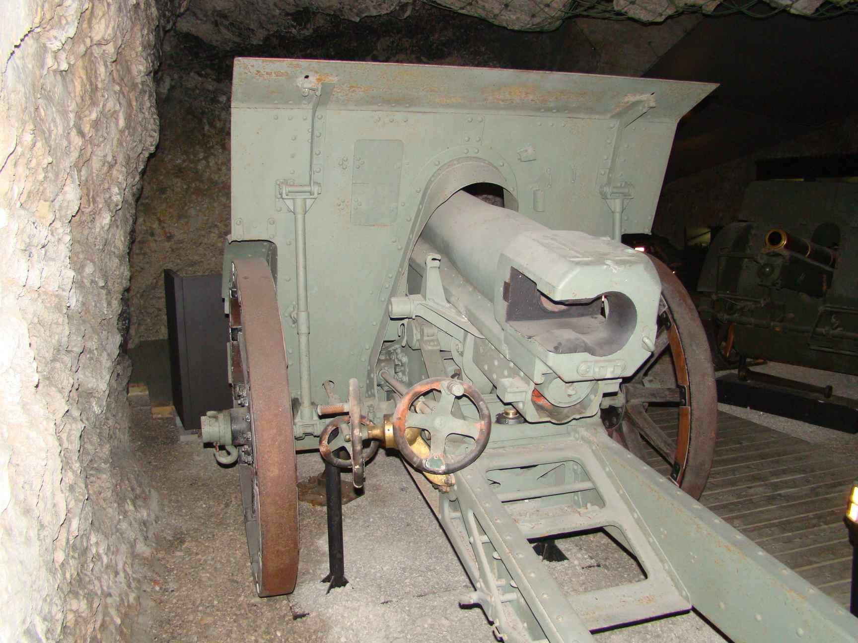 One of the specificities of the warfare in the Alps was the use of concealed enemy artillery guns behind gun-ports, in caverns and in casemates. The 8 cm Schartendemontierkanone M.17 ('SchartenDemontierKanone' = 'embrasuser destructing gun'), sometimes called 8.35cm M17 was designed to destroy or dismantle such specific targets, by adapting a very long 8.35 cm L/60 barrel on the good carriage of the 10.4cm K15 gun. |
