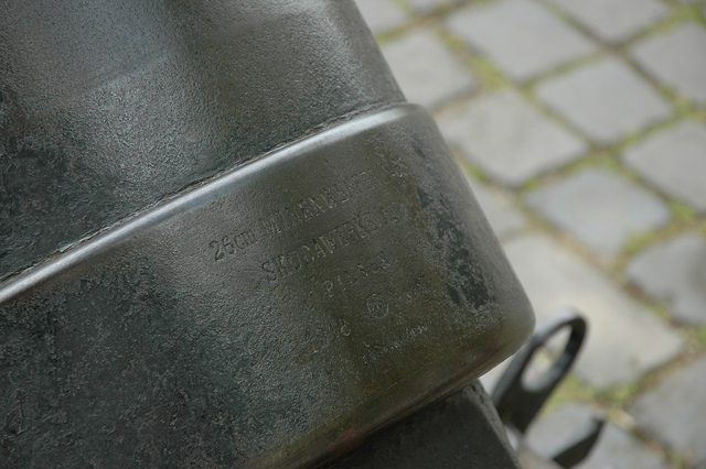 Breech markings ; '26cm Minenwerfer Nr65 (?) - Skodawerke AG - Pilsen - 1918 - (???)'