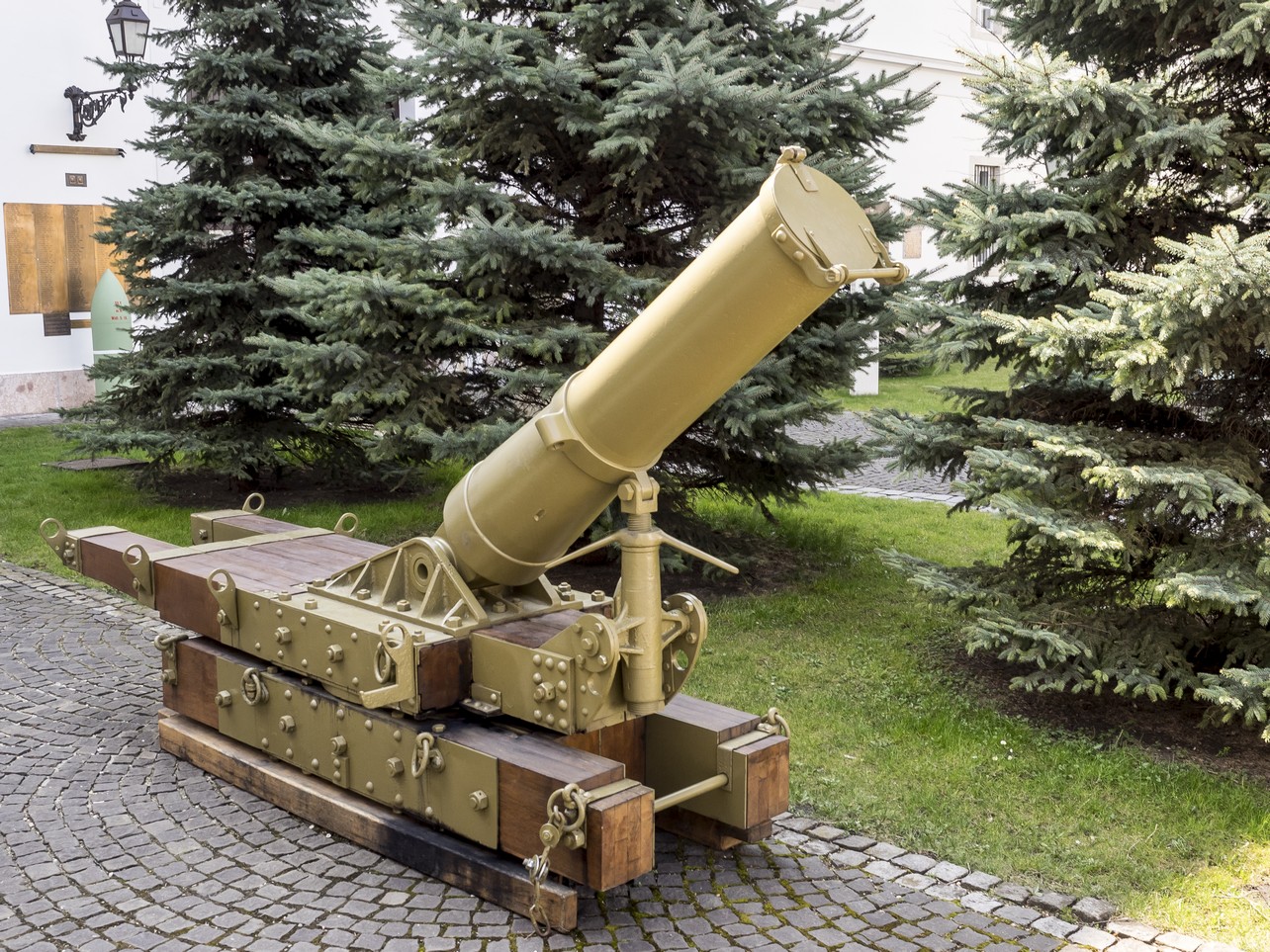 It could be transported in four separate loads. Because of the lack of coal and steel ans despite a priorization, only about 300 such weapons only were produced, and the first mortars (the biggest produced during WW1 by Austro-Hungaria) only arrived on the front from March 1918. This weapon was still in service in the Austrian army after WW1.