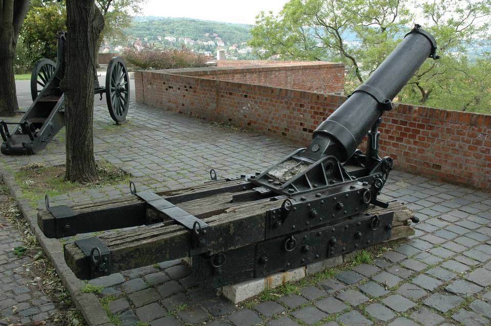 All the proposed models revealed themselves superior to the 24cm M16, but at the end the choosen one was the Skoda type. The one equipped with a recoil recuperation system was discarded in order to avoid complexity. This '26cm M17 MW' was composed with a rifled bore muzzle loading barrel, enlarged in its lower part and drilled with a hole for firing the propulsive charge with a primer. It was rotating on a ball stud for the vertical aiming that was done by acting on a bolt and screw system supporting the barrel.