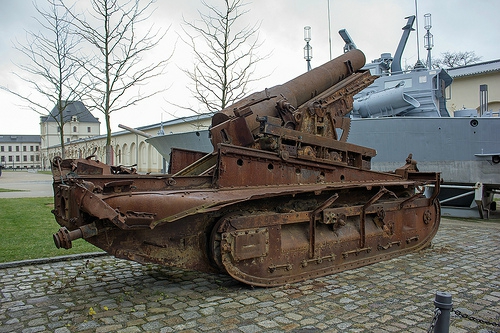 - Complete description : 280 mm quick fire mortar M 1914 Schneider on Saint Chamond tracked carriage