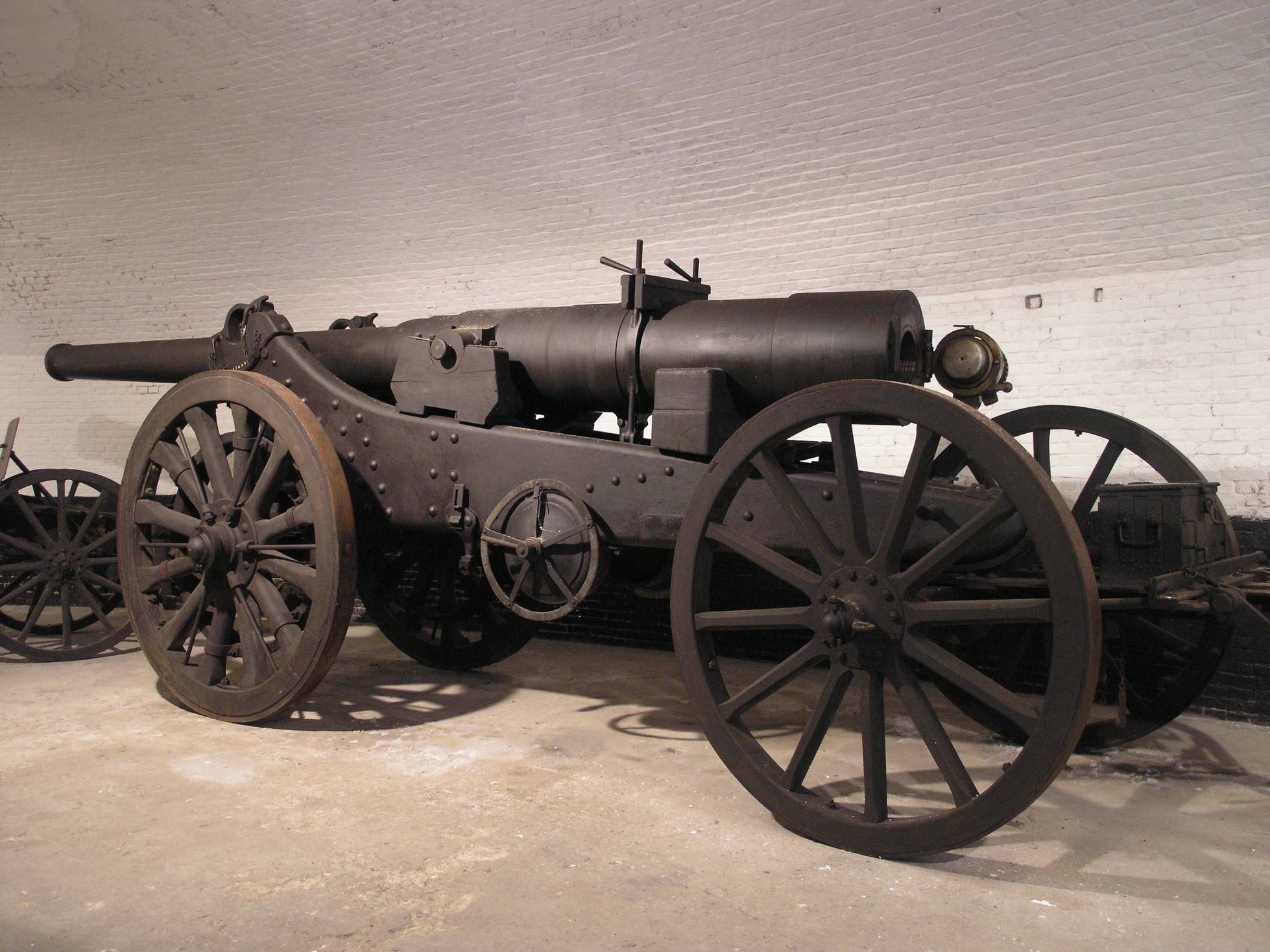 The ballistic properties of this gun's barrel were brilliant with its nice 35 calibres length, allowing a maximum range of 12 km (and even up to 14km according to some sources). Unhopefully, its carriage design did not integrate the latest technological revolutions of the artillery taking place in Europe at this moment, since the static carriage of this gun was not equipped with any kind of modern recoil recuperation system. The only way to get this gun approximately returning on its position after firing was the use of wooden wedges placed behind the wheels, and wheel belts. This had a direct effect on the fire rate that was also handicapped by the poorly efficient interrupted screw breech that had to be operated in 3 movements.
