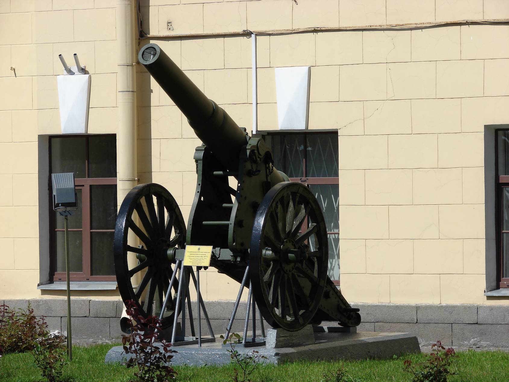 The '6 inches 120 puds Model 1877 light siege gun' (120 puds being the barrel weight, 1 pud = 16.34 kg) was the lightened version of the 6 inches 190 pounds Model 1877 heavy siege gun. Just as this latter, this weapon was extracted from the fortresses to equip the Russian army in 1914.