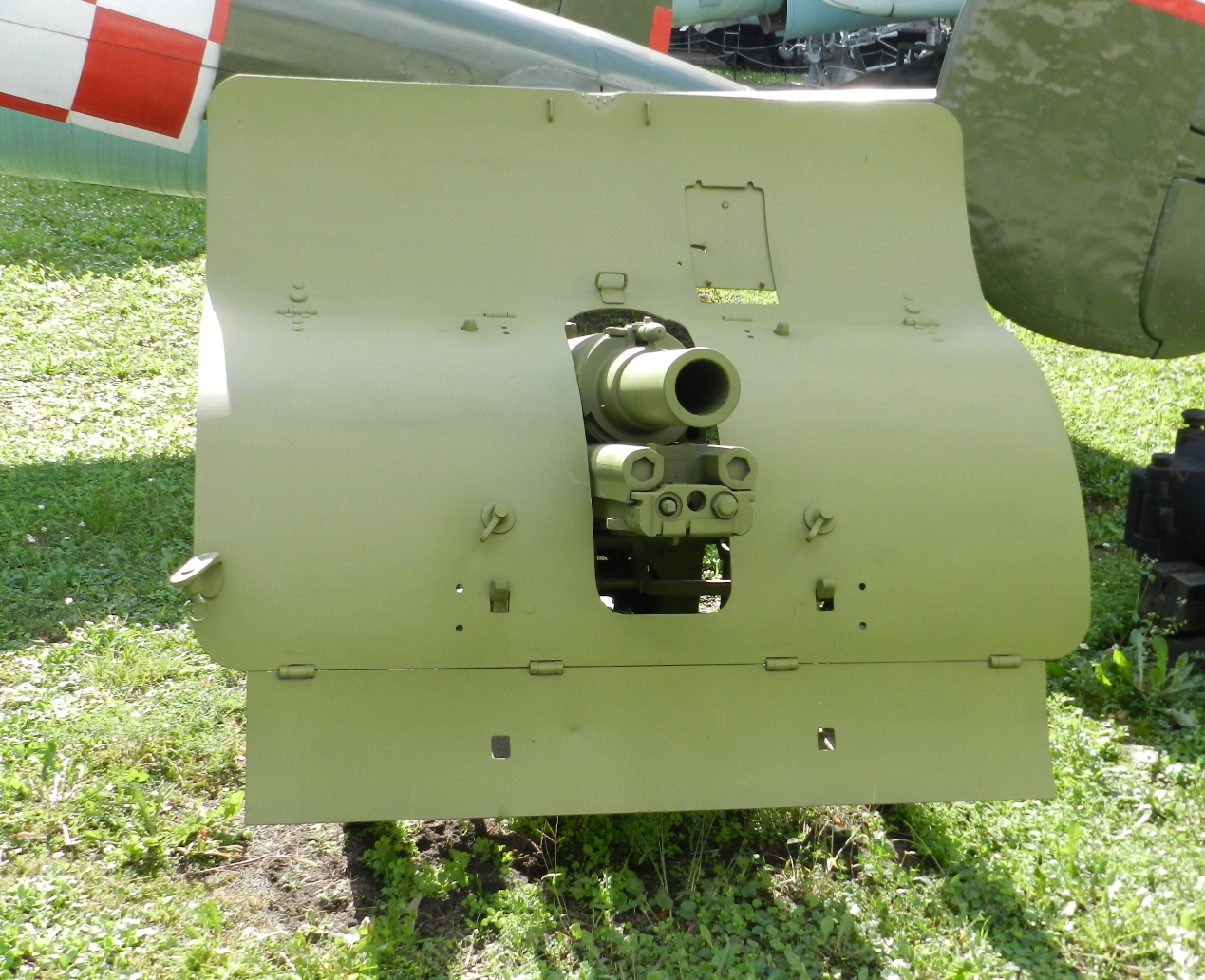 In addition to the dismantlable barrel, the guns were equipped with a hydro-pneumatic recoil recuperation system, a large curved typical shield, and a mechanism allowing to pre-position the tube cradle on two different heights to the carriage so that the breech was not hitting the ground with the higher elevation angles.