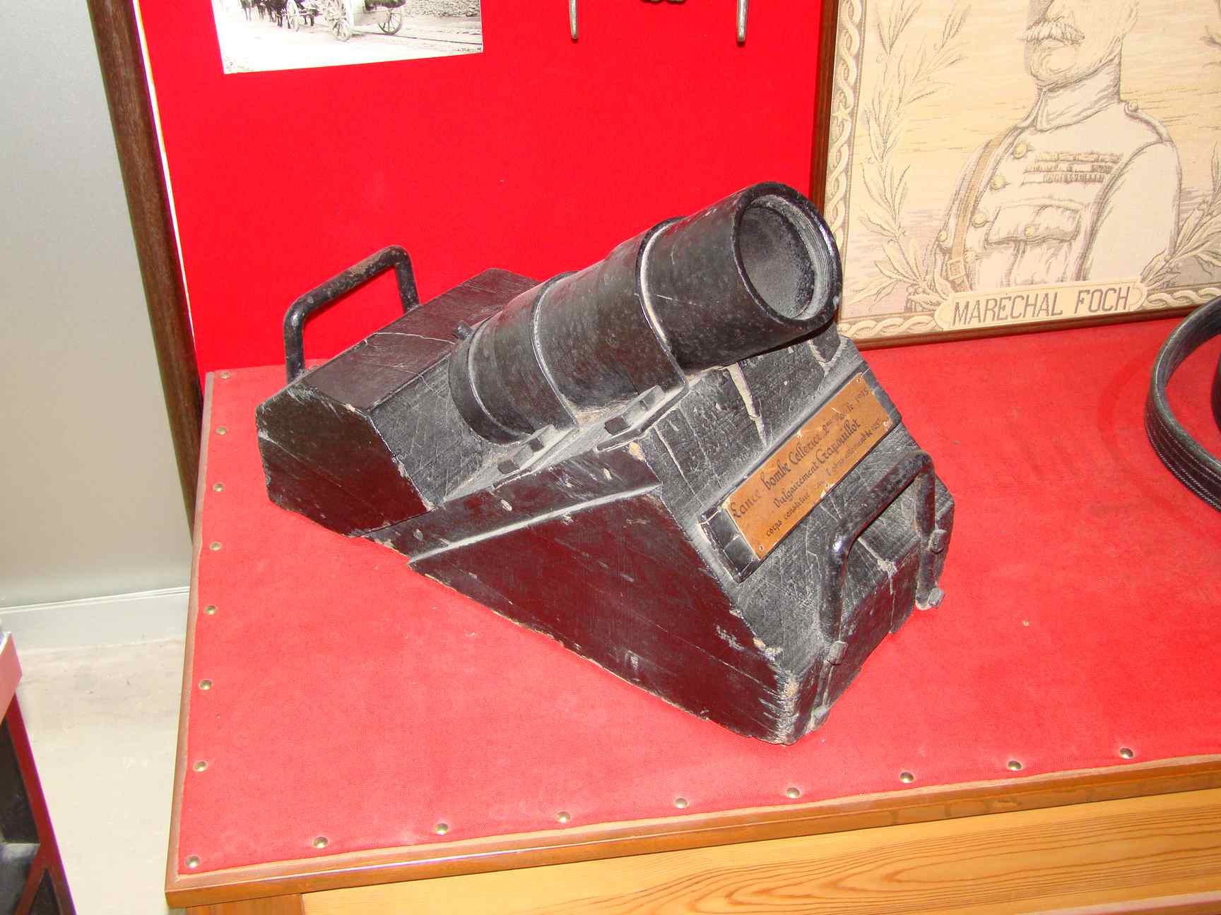 This 'Mortier Cellerier' shot its first projectile on the front line on November 4th 1914. The range was adjustable by changing the propulsive charge weight and the wedge angle (inserting wood planks under it...)
