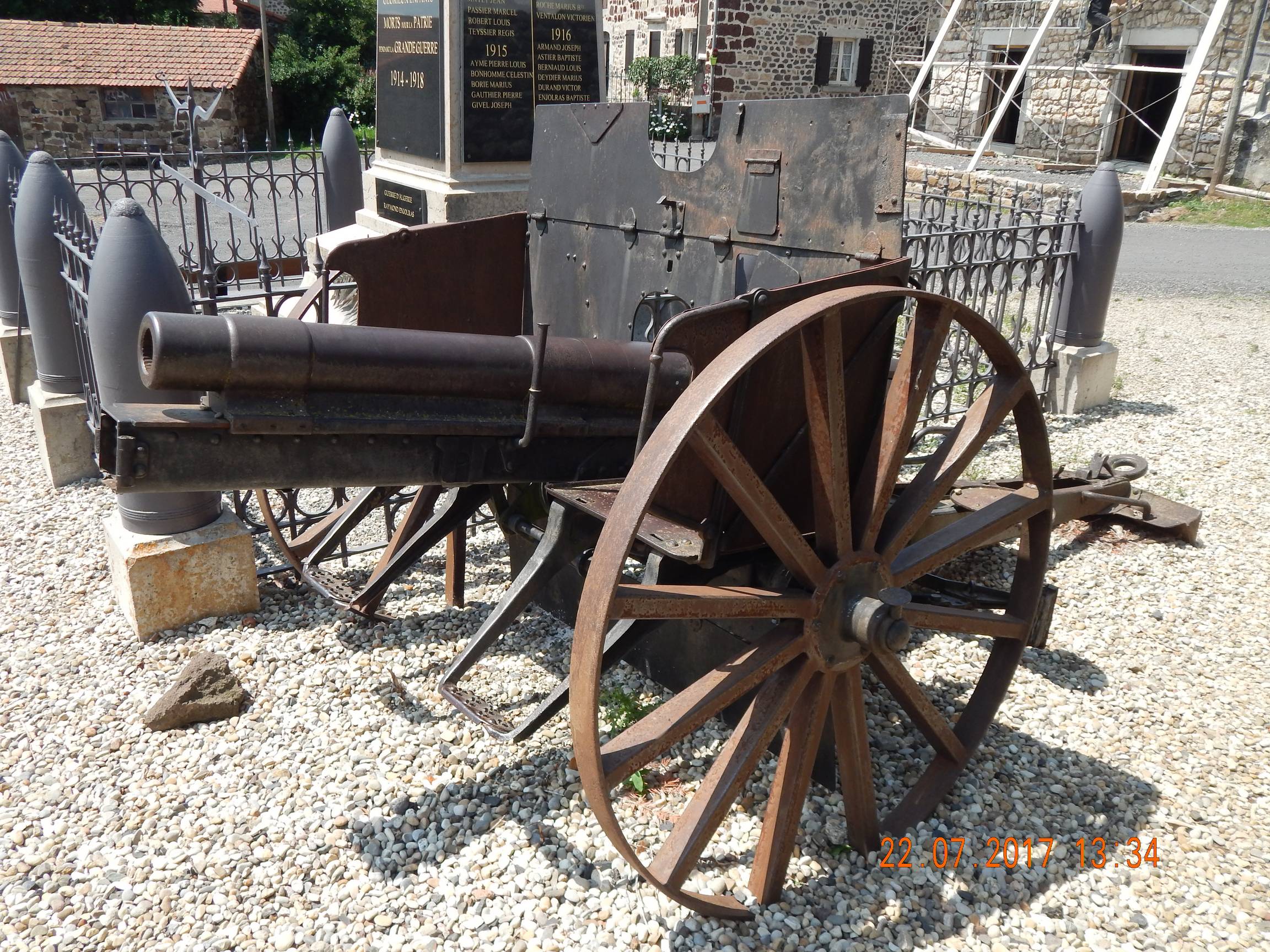 However, in practice, this operation was Consequent since on the tube only, the workshops had to machine the rear chamber in order to accommodate the use of assembled ammunitions, change the whole breech, re-machine the diameter and slighrly shorten the barrel to lighten the gun, add side guides, and mount on a new recuperator. The carriage was almost a new one with a longer trail, a shield was added, ...
