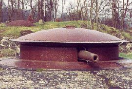 - retractable steel turrets ('GrusonWerk' or 'Marcinelle et Couillet') for 1 single barrel, located in the modern forts central massif for their close-range defense,