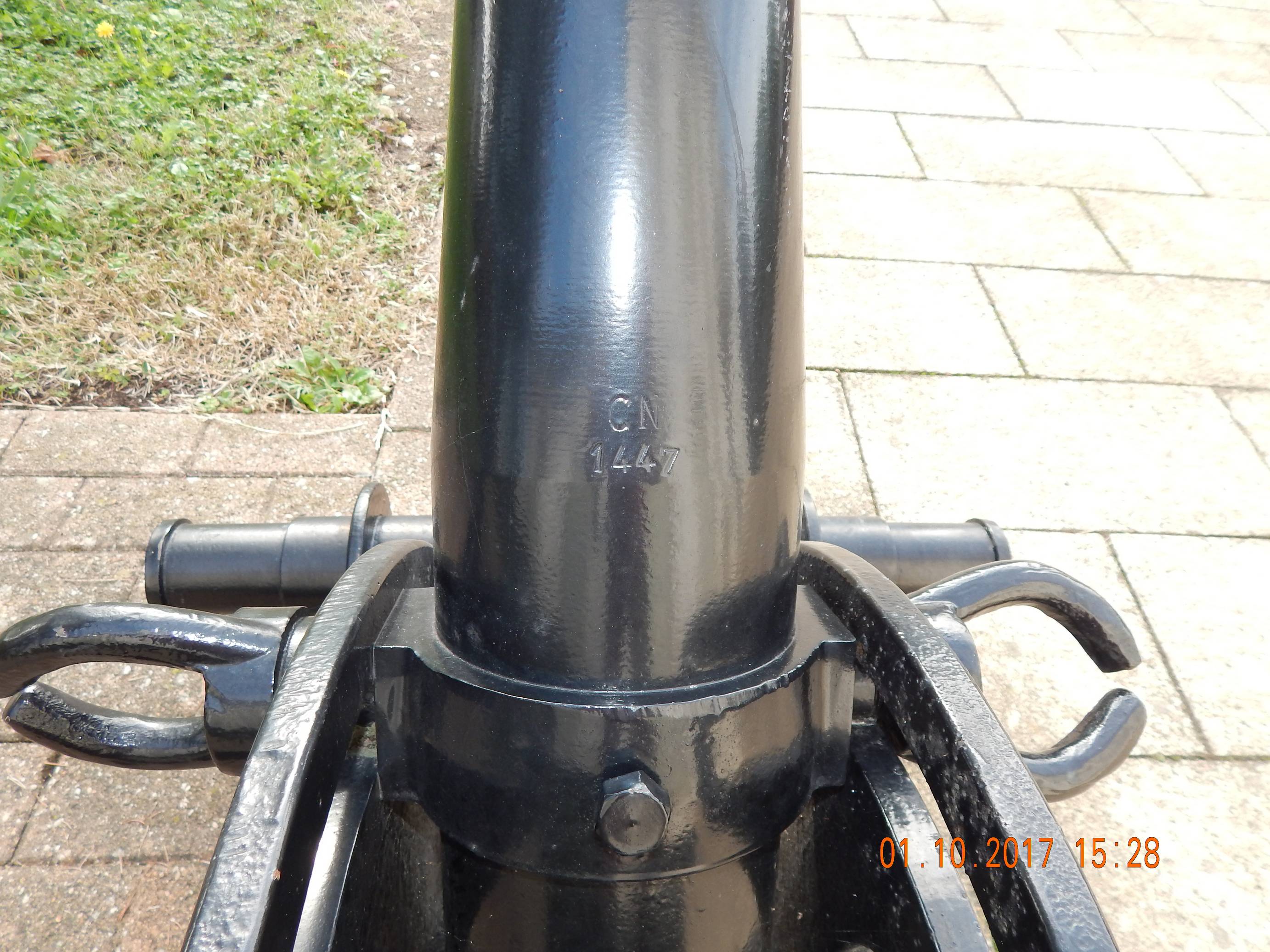 Therefore, immediately after the frontline firtst shots of the new weapon, the Commandant Duchene was asked to go back to Bourges and design the next generation of this too rudimentary : the new version came real quick, more robust, equipped with a more stable carriage, orientable in direction by pivoting against a curved plateI, with improved range, and able to throw bombs more powerful than the 16 kg fin-tail bomb.