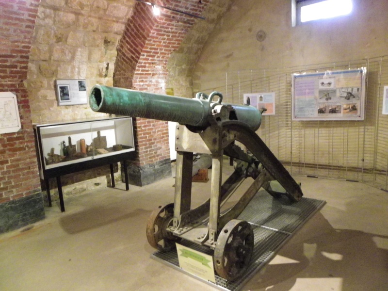But in 1884 numerous (more than 700) obsolete type 12 fieldguns were modified into ditches bunker weapons, for the defense of the fortresses. By sawing out the bottom of the old bronze barrels, it was possible to equip them with a screw breech system similar to the one of the 95mm Lahitolle guns. This characteristic gave the new weapon its name 'Canon de 12 Culasse' ('gun of 12 with breech'). The relatively modest power of these guns mounted on rudimentary carriages ('affût de 4', 'affût de 5' or 'affût de 7'), was preventing them to make too important damages to the masonry walls of the ditches they were defending. In the caponnieres (ditch side bunker) and the 'coffres de contre-escarpe' of the French Seré de Rivière forts, they were often associated with 40 mm revolver guns with a smaller power but a much higher fire rate.
