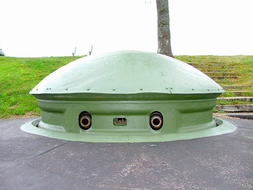 This was done with the appearance of the 'tourelles cuirassées Mle 1905 pour deux canons de 75 Mle 75-05', retractable, whose structure had been already approved in 1901, as a result of studies made between 1890 and 1895. Their millenieum 1905 probably corresponds to the year when the artillery weapons were adopted. These 'Canon de 75 Mle 75-05' were a variant of the famous 75 Mle 1897 fieldgun, of which they only kept the barrel shortened by 1170 mm (some authors say 600 mm or 690 mm ??), and the Nordenfelt breech mechanism. The turret carriage included two hydro-spring recoil recuperators and allowed elevation angles from -7 to +12 degres. The shortening of the barrel from 34 to 17 calibres and the limitation of the biggest elevation angle to 12 degrees limited the range to 4875 m. But with such 2 quick firing guns, the turret was able to obtain a fire rate up to 22 rounds per minute !