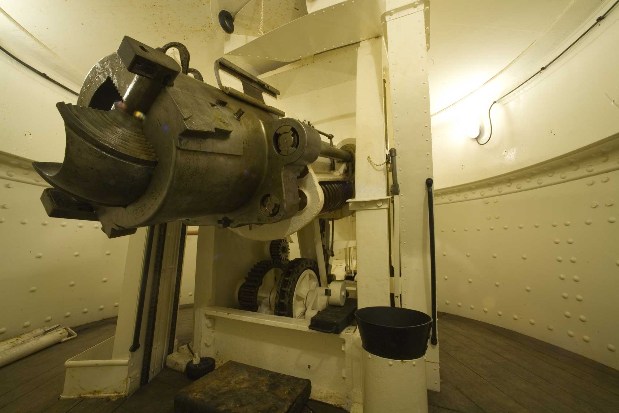 The barrel used for this turret was a new 'Canon de 155 R Mle 1907' mantled, with a de Bange type shape profile but shortened and adapted to quick fire, mounted on a carriage equipped with a recoil recuperation hydro-spring system. Its performances were such that the single tube alone equaled the fire rate of the two 155 L guns of the former turrets, with an equivalent range of 7200 m. The concentric threads breech 'Canet', with its hemispheric mobile block, that was replacing the usual de Bange breech system had been developped by the famous engineer of the Schneider Company before 1900.
