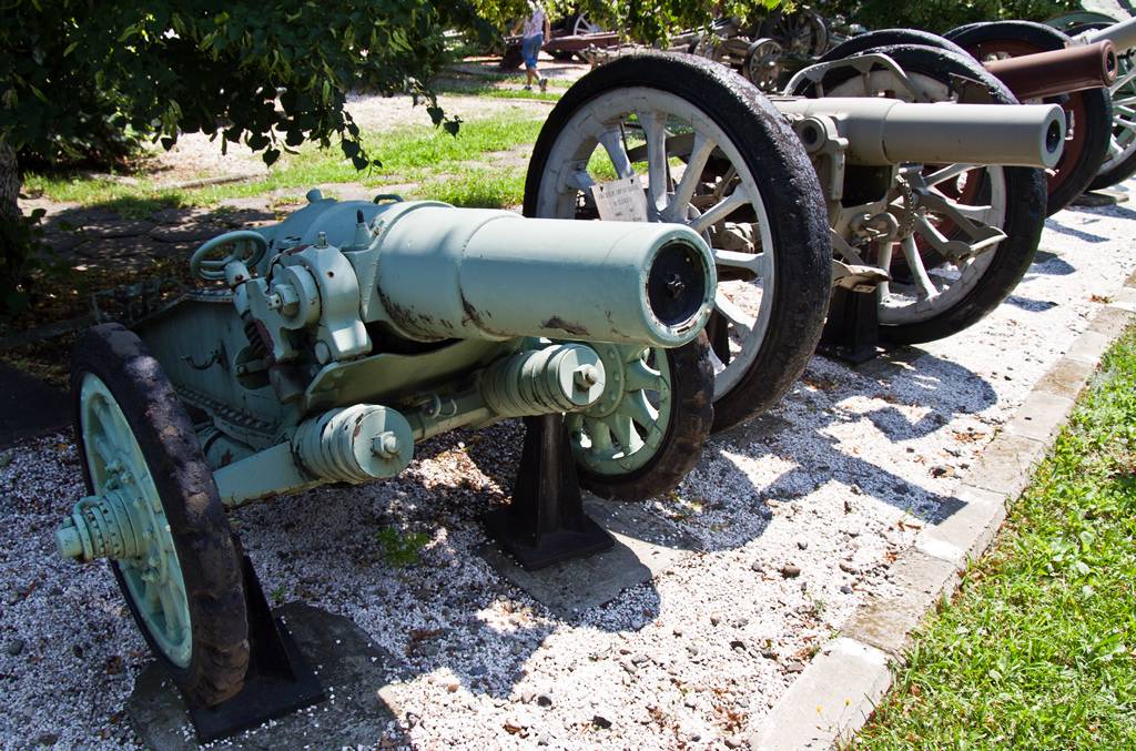 The rubber wheels are a post-WW1 modification. This howitzer probably has been captured to Serbia then used by Romania
