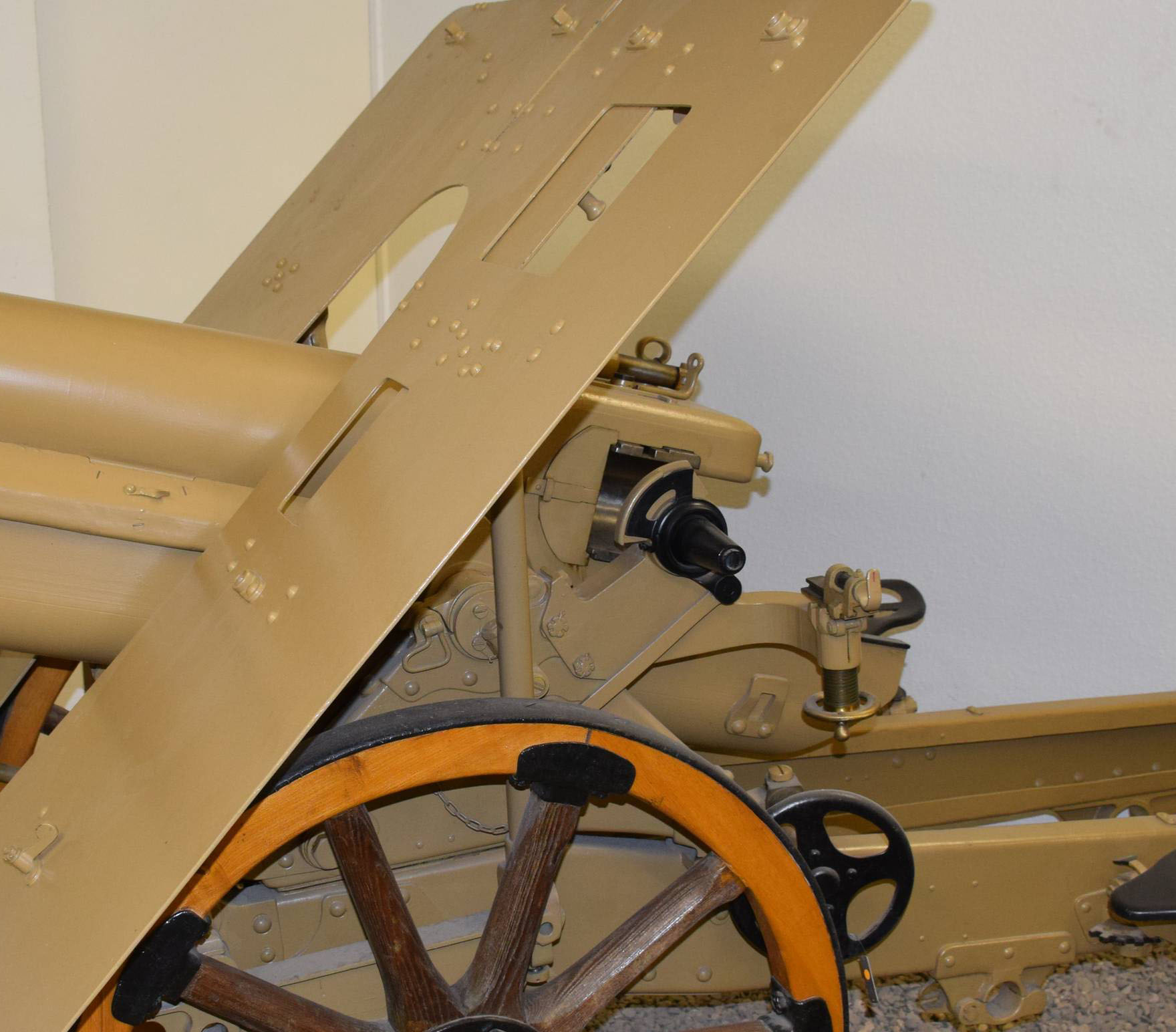 The adaptation of this gun to the specifications of the mountain artillery gave birth at the end of 1915 to the '10 cm Geb.H M16' Skoda mountain howitzer, 14% lighter than the field howitzer. The recoil recuperation system of the mountain howitzer had been modified in order to allow a maximum vertical aiming angle of 70 degrees. The barrel was mounted in a position that lowered the center of gravity on a carriage equipped with a narrower small wheels train (90 cm). It had a smaller shield, and could be dismounted into 3 separate loads for the pack transport on mountain roads.