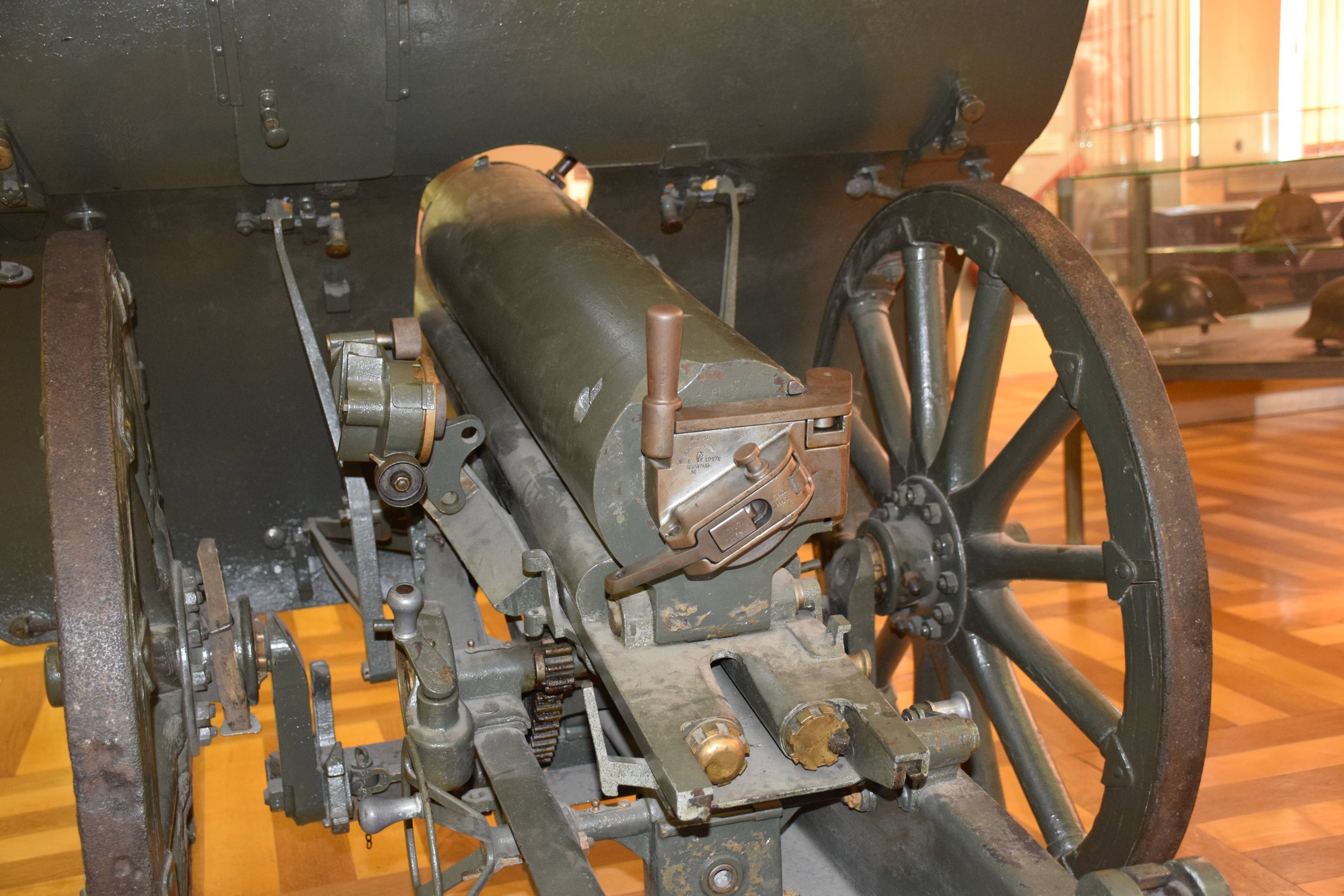 In addition to the dismantlable barrel, the guns were equipped with a hydro-pneumatic recoil recuperation system, a large curved typical shield, and a mechanism allowing to pre-position the tube cradle on two different heights to the carriage so that the breech was not hitting the ground with the higher elevation angles.