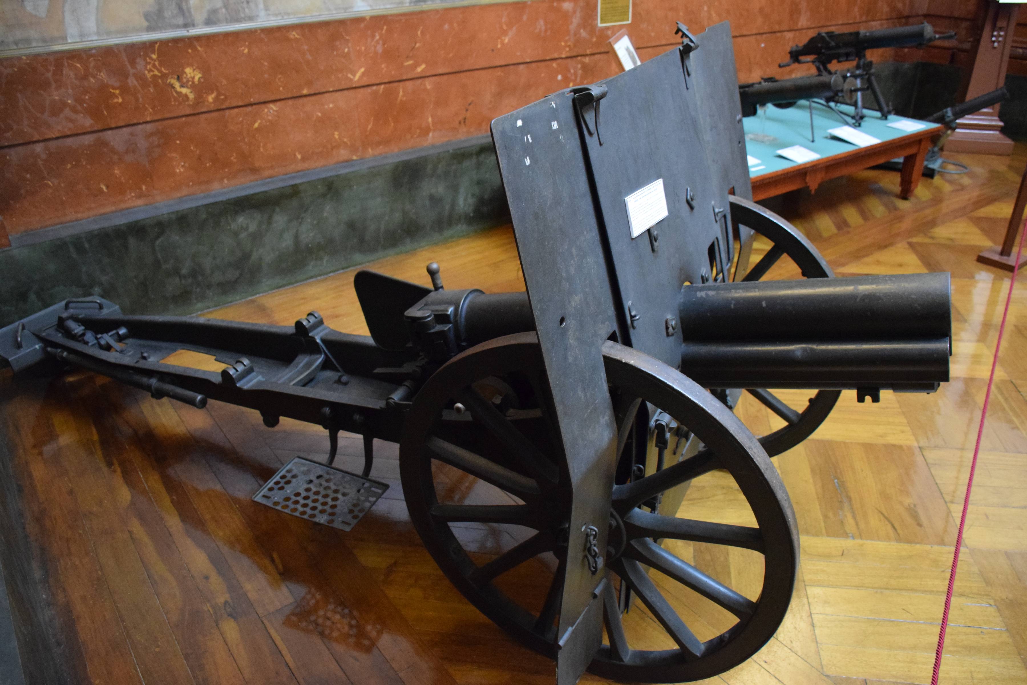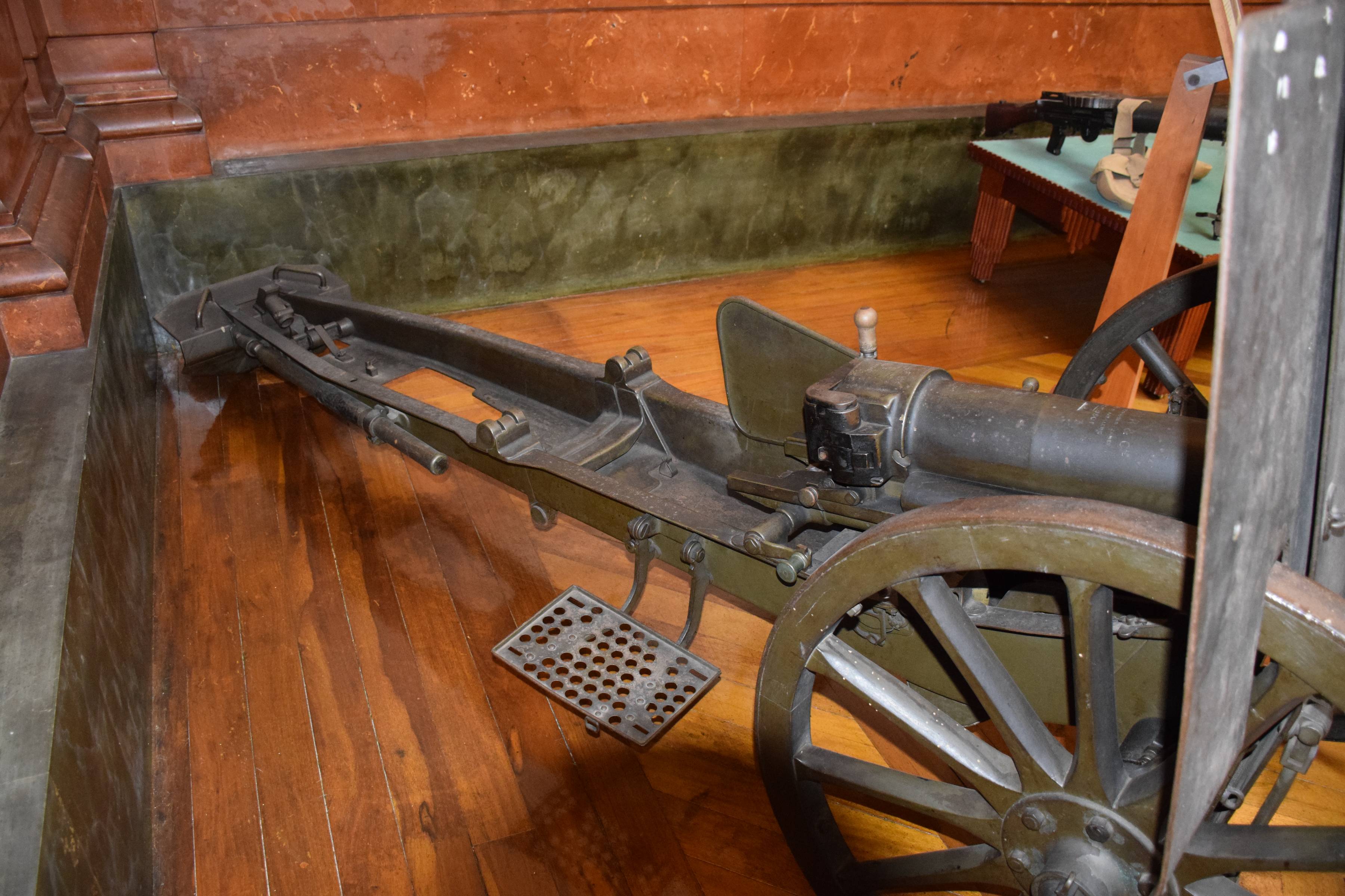View on the Schneider-Canet breech. Barrel markings : 'Peça de 7 TR - Modelo 1906 - Nr 3 - Peso 109' |