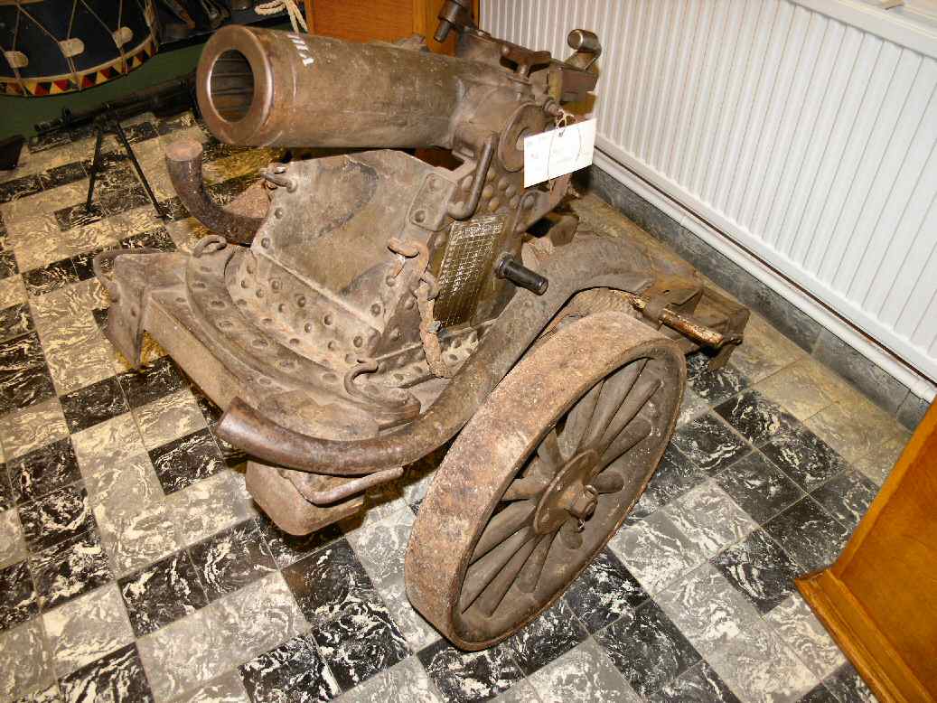 The survivor is equipped with its transport wheels; Notice the firing table (in elevation degrees), depending on the propulsive load and the desired range
