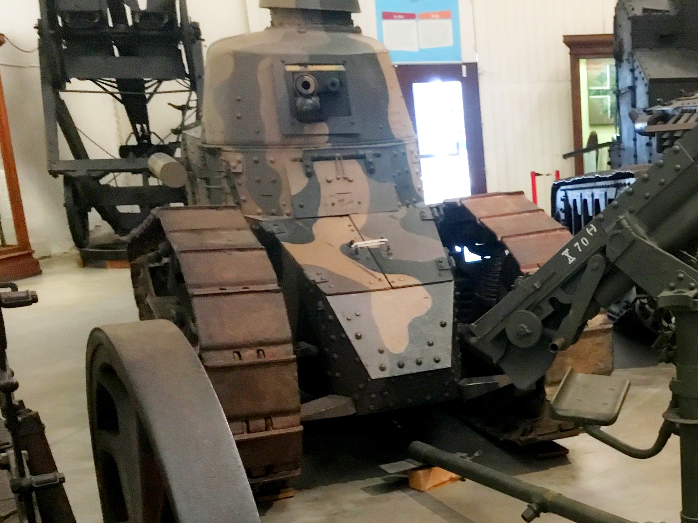 This 'Renault FT', that was not called 'Renault FT17' berfore the end of WW1 is still considered nowadays as the very first modern tank in the world, since the concepts it introduced remain in place nowadays, with the turret, the front room for the driver, the rear position of the engine, the design of the tracks and their gearing. Very early in the conception phase, Estienne and Renault wanted to arm the tank turret with either a machine gun or a gun. As a consequence, about 2/3 of the tanks produced received a 8mm Hotchkiss machine gun, while the remaining 1/3 was equipped with a 'canon Puteaux de 37mm SA 18' ('SA' for 'Semi-Automatique').