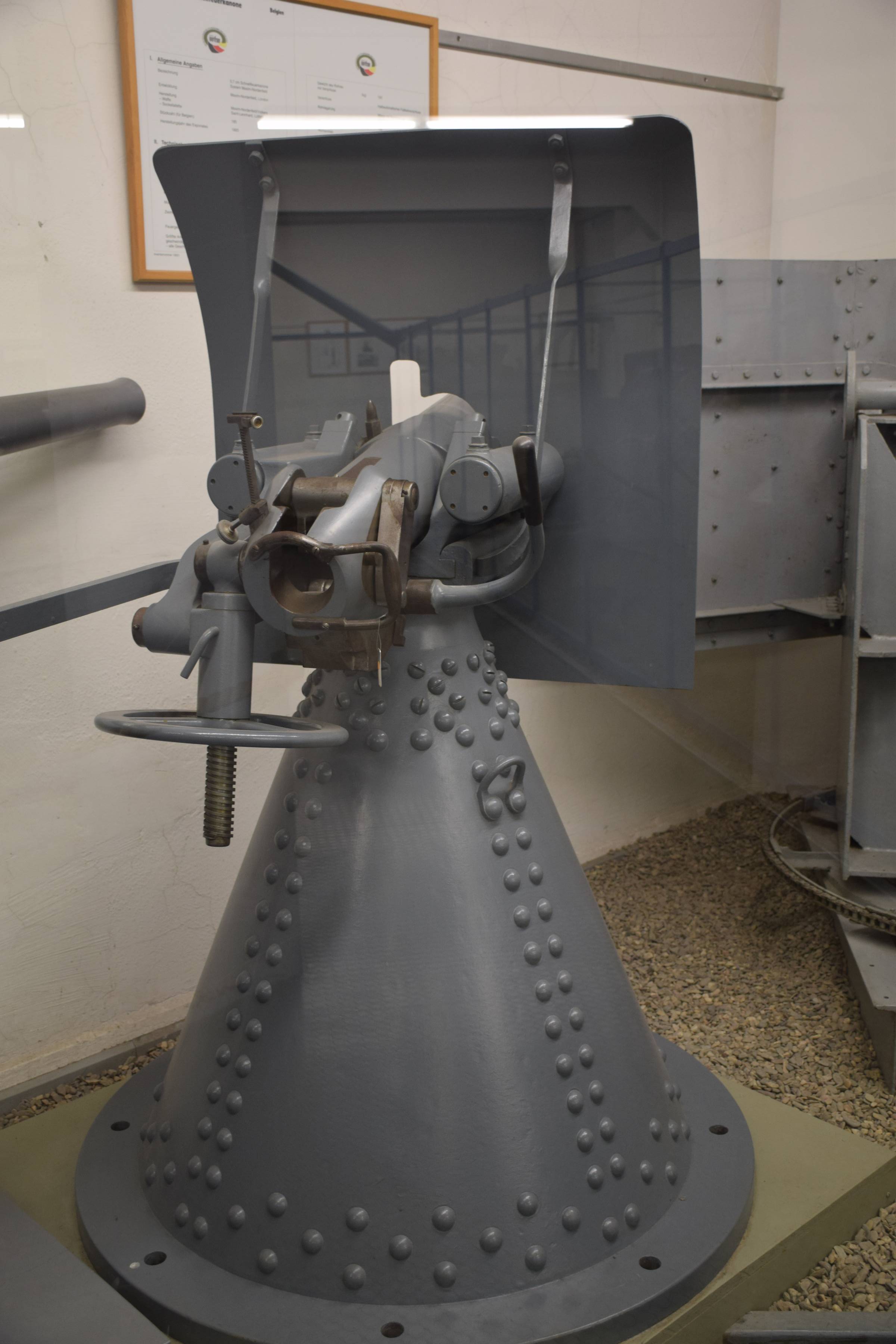 This polyvalent weapon also armed fishing ships during WW1. It was largely used by Germans who captured numerous such guns in Belgium fortresses and renamed them 'belg 5,7cm K' to use them as infantry guns under shielded cuppola or on pivot, in naval defence and later in their famous giant tanks 'A7V'.