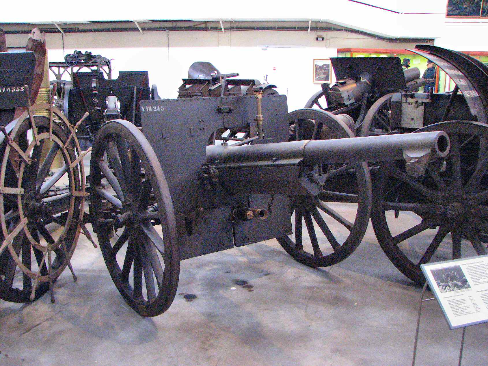 This type of gun was delivered by France to its Belgian ally. Front view inside the impressive WW1 artillery ring of this rich museum |