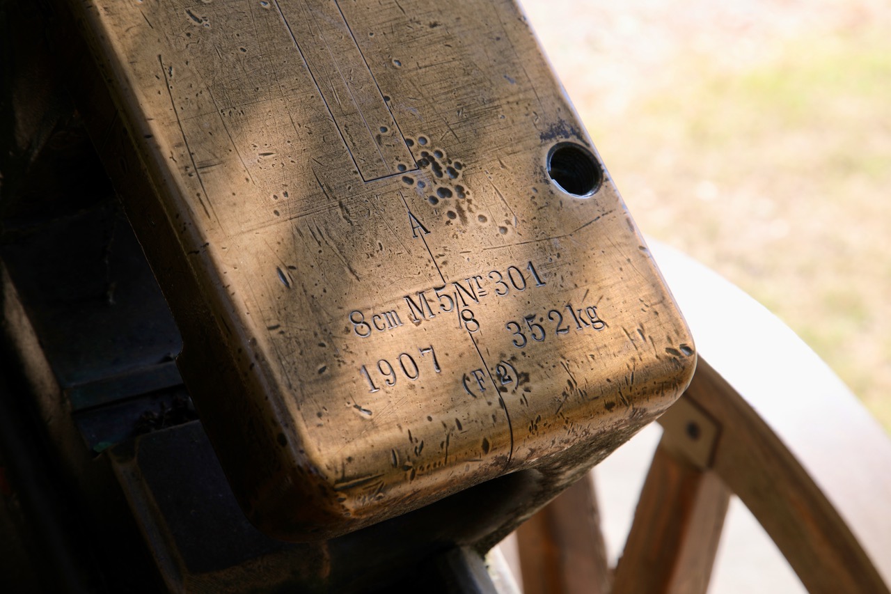 But from the second half of 1915 one could see new more sophisticated material coming, just as this weapon manufactured by adapting a 8cm FK M05/08 field gun barrel on a modified 10cm M08/M10 mountain howitzer carriage. The wheels of this 8cm FK M 05 - M 05/08 Flak mit 10cm M 08 / M 10 GebH lafette were only mounted during transportation and removed in firing position, the gun then laying on its pivot placed on a concrete base.