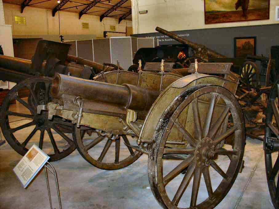 This howitzer presented in Brussels is identified as a M14/16 version. It is the tube alone, carried on its wagon
