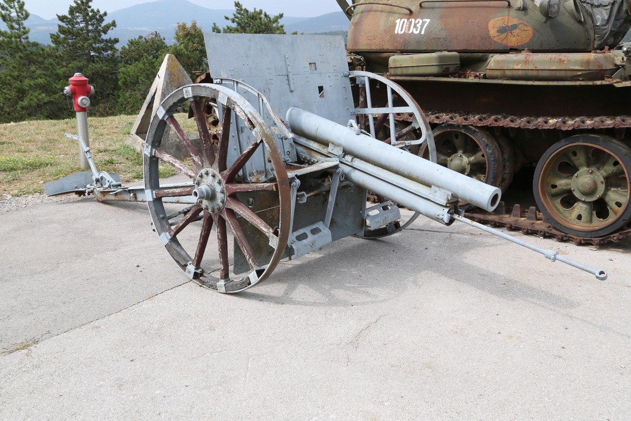 The 1905 model was modified in 1908 in order to improve its use in mountain operations, thanks to the possibility of rapidly dismounting / reassembling the gun into 3 separate loads for transportation and adapting it to a narrow width carriage (90 cm total width wheel to wheel). This new version was provided to all field artillery units, and was named '8 cm FeldKanone M 05/08',