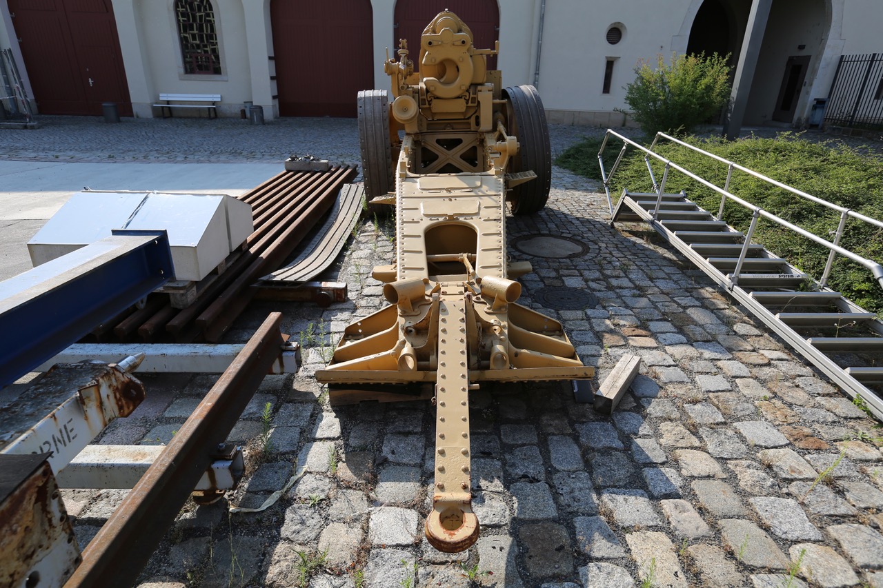 'lange Mörser' was modified a last time in 1917/1918, re-inforcing its wheels system (now steel discs pierced with holes, instead of rod wheels) and its suspension to allow the mechanical towing in a single load by a tractor. The tube could now be moved backwards to lye directly on the carriage trail for transportation. This last version, 100 kg heavier, was named '21 cm Mrs. M17