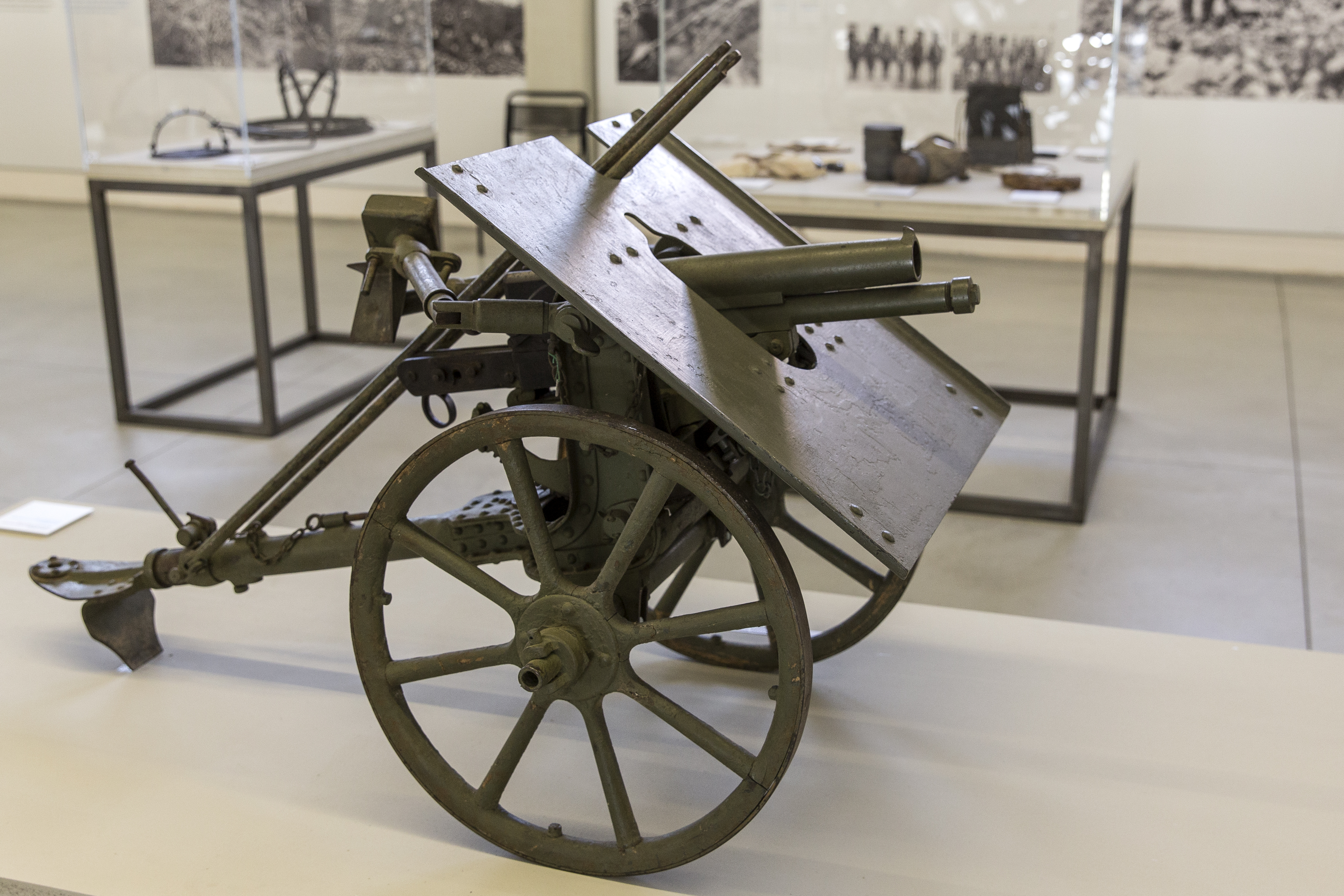 This small gun prototype of the future '37 mm M15 InfantrieGeschütz' was rapidly tested in the Western Front in October and November 1915, and adopted. The 60 first detachments with 2 guns each arrived on the front as soon as February 1916. The guns based on a simple carriage, a very short (10 calibres) 37 mm barrel, a Skoda falling block breech mechanism and a hydro-spring recoil brake from the same company were weighing less than 100 kg in position and could be transported either on a small wheel axis or on mules, or disassembled into 3 separate parts of about 25 kg each that could be handled by men.