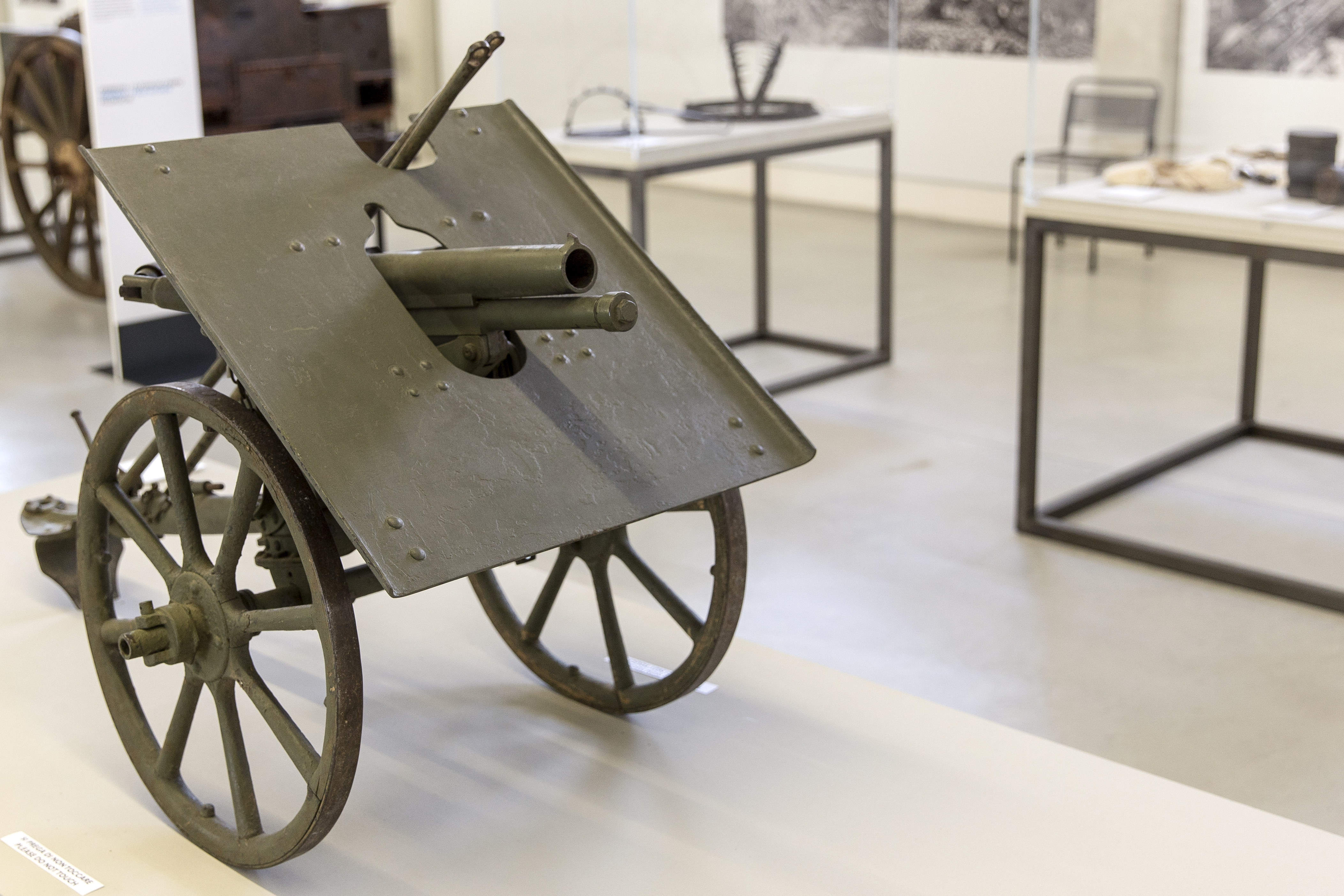 With the war first fights, the different armies infantry units soon felt the need to have weapons able to neutralize, with precision and without danger for the first line friendly units, machine guns nets protected by sandbags of light fortifications resisting to indirect shelling, by direct shooting through their embrasure. This mission was made even harder because of the difficulty to bring material and ammunition in the first lines, with narrow trenches, devastated grounds or mountain positions. Austro-Hungaria, whose armies were equipped and trained for mountain warfare, soon discovered that the light mountain artillery dismantable guns were not convenient for that specific mission, and that a ultra-light flat fire weapon was needed.