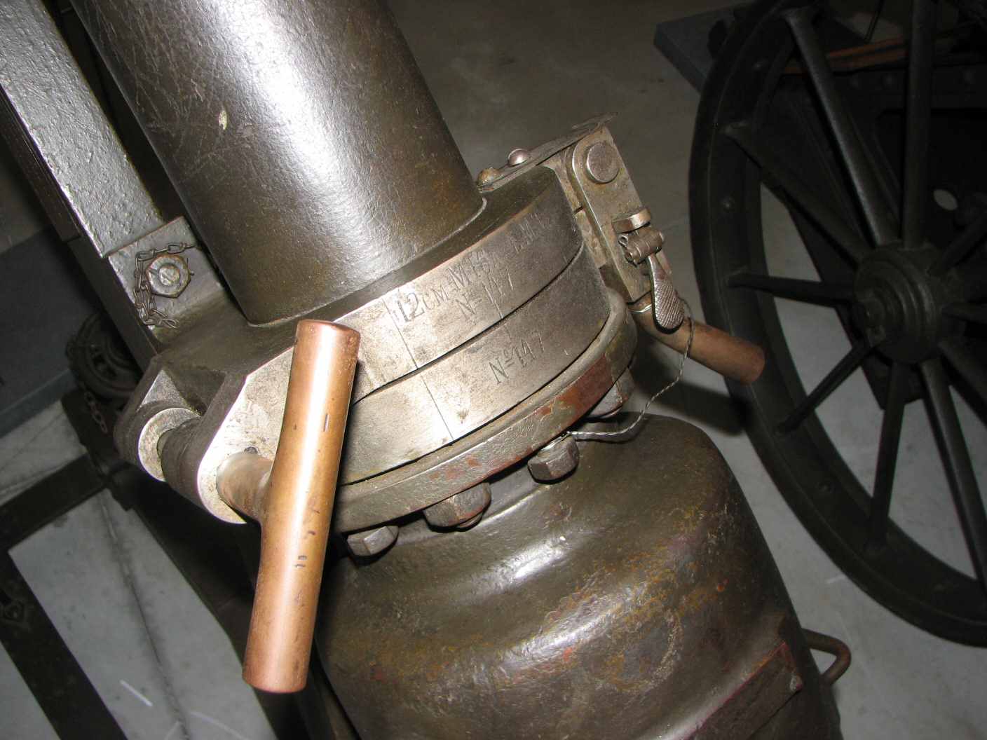This mortar is mistakenly identified as a French gun by the museum, probably confused by the Brand & L'Huillier AG markings, having nothing to see with the French Brandt. |