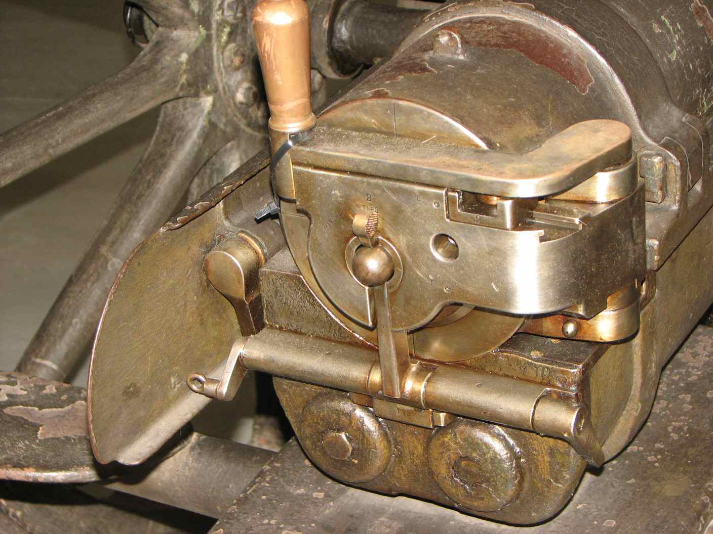 View on the Schneider-Canet breech. The barrel markings are barely visible but are in Portugese