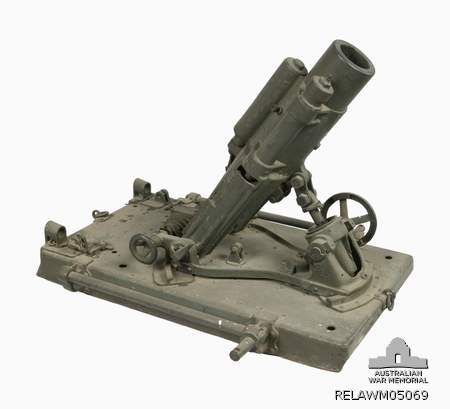 A very rare (only survivor ?) German light minenwerfer 7.6cm lMW a/A, reckognizable mainly with its rectangular base, in the Australian War Museum collections (not accessible to the public ?)