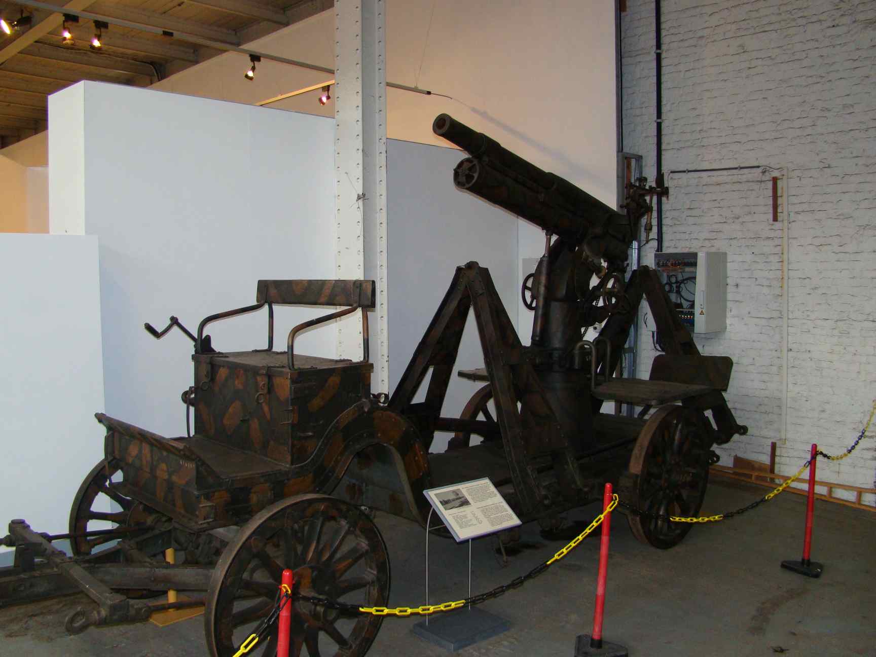 - 7.62 cm WagenFlak with the same conical base transported on a amovible horse-driven platform. The setting into firing position required to dismount the rear wheels carriage, and bury the front wheels carriage. Only 4 such guns were built.