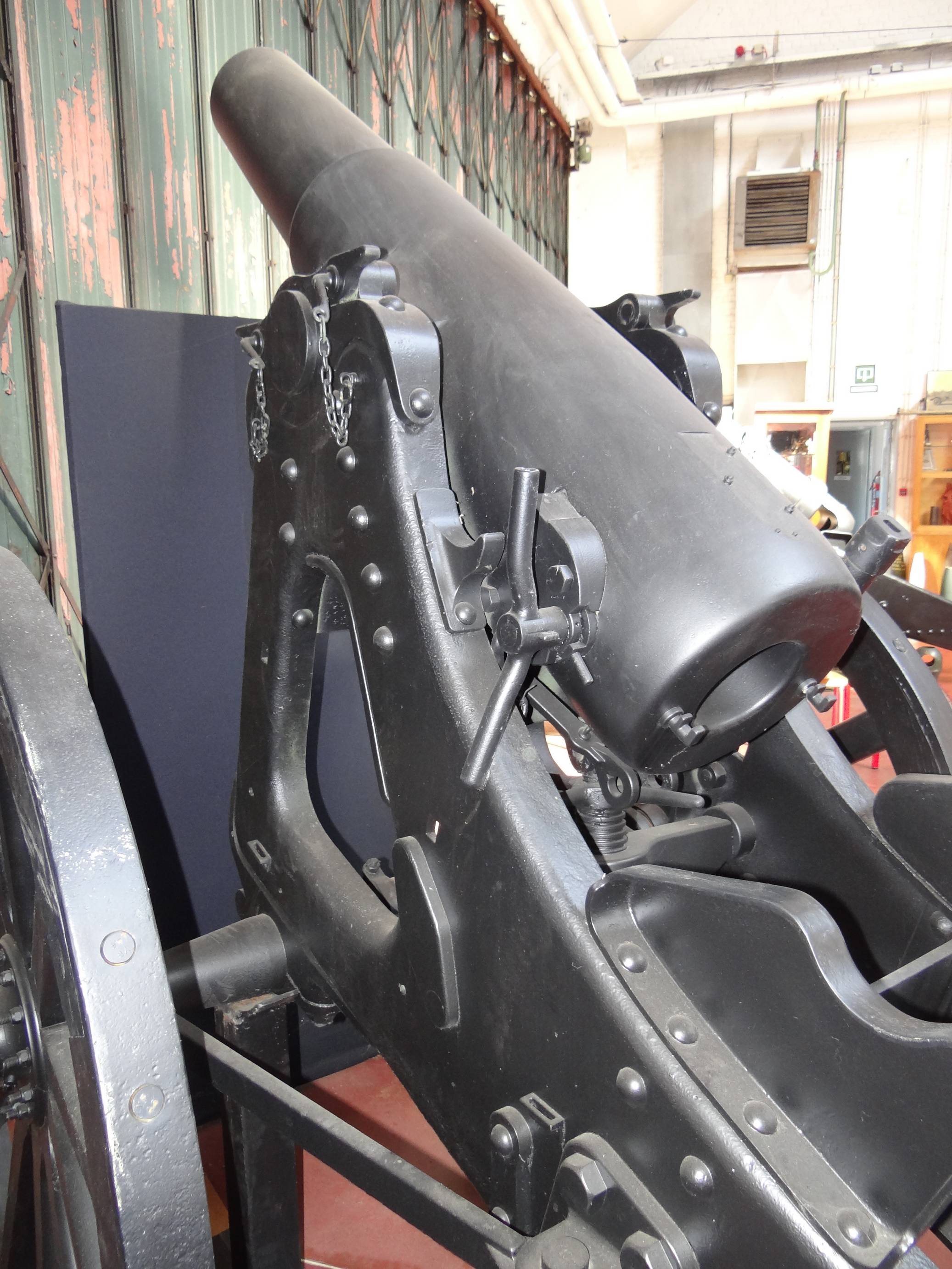 - Complete description : 15 cm Krupp rifled howitzer 1887 (mantled) on siege metallic carriage