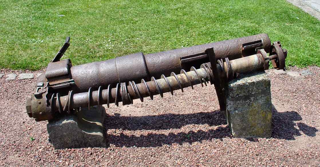 Only the tube and the recuperator are surviving, allowing to observe the spring of the hydro-mechanical brake.