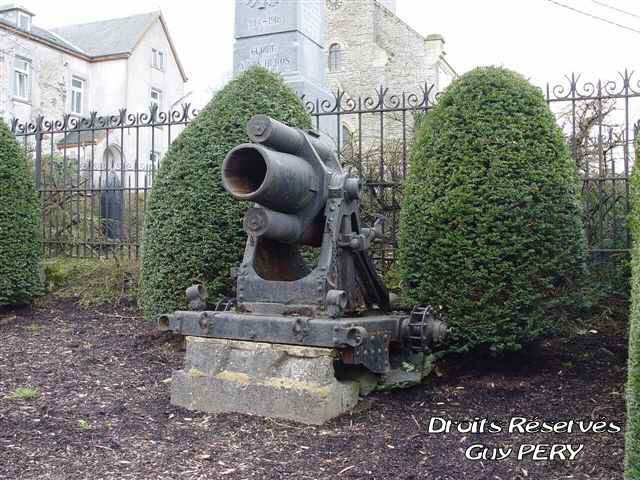 Two identical minen are exposed near this small Ardennes village church
