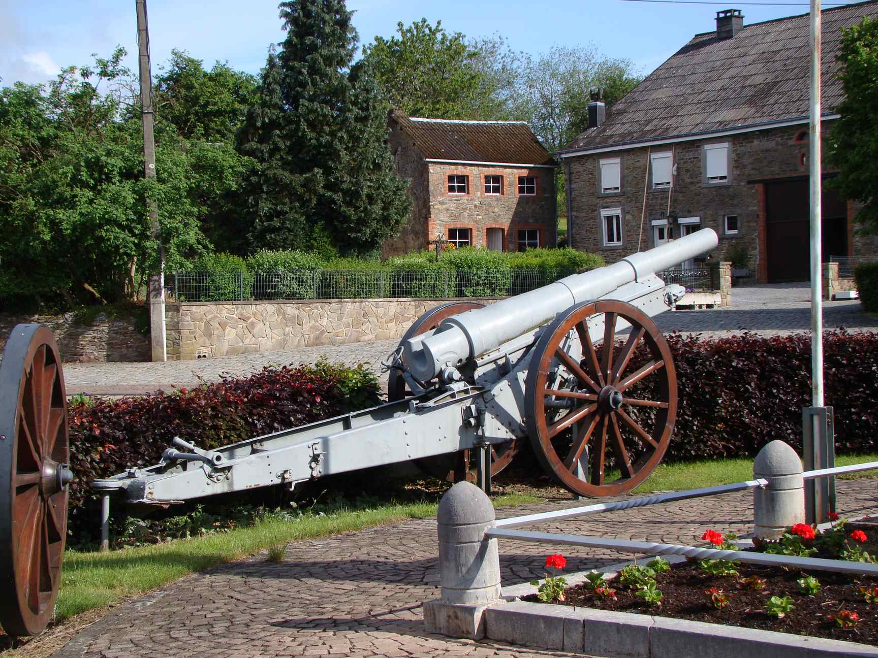 An exceptionnal battery of four 10cm K04 cannons are guarding this small and peaceful Belgian Ardennes village monument since 1922, when they have been sent by train from the town of Huy to the station of Poix St Hubert, then trailed to their final destination. These four guns are a good illustration of the continuous production of this 'old' gun throughout the war.