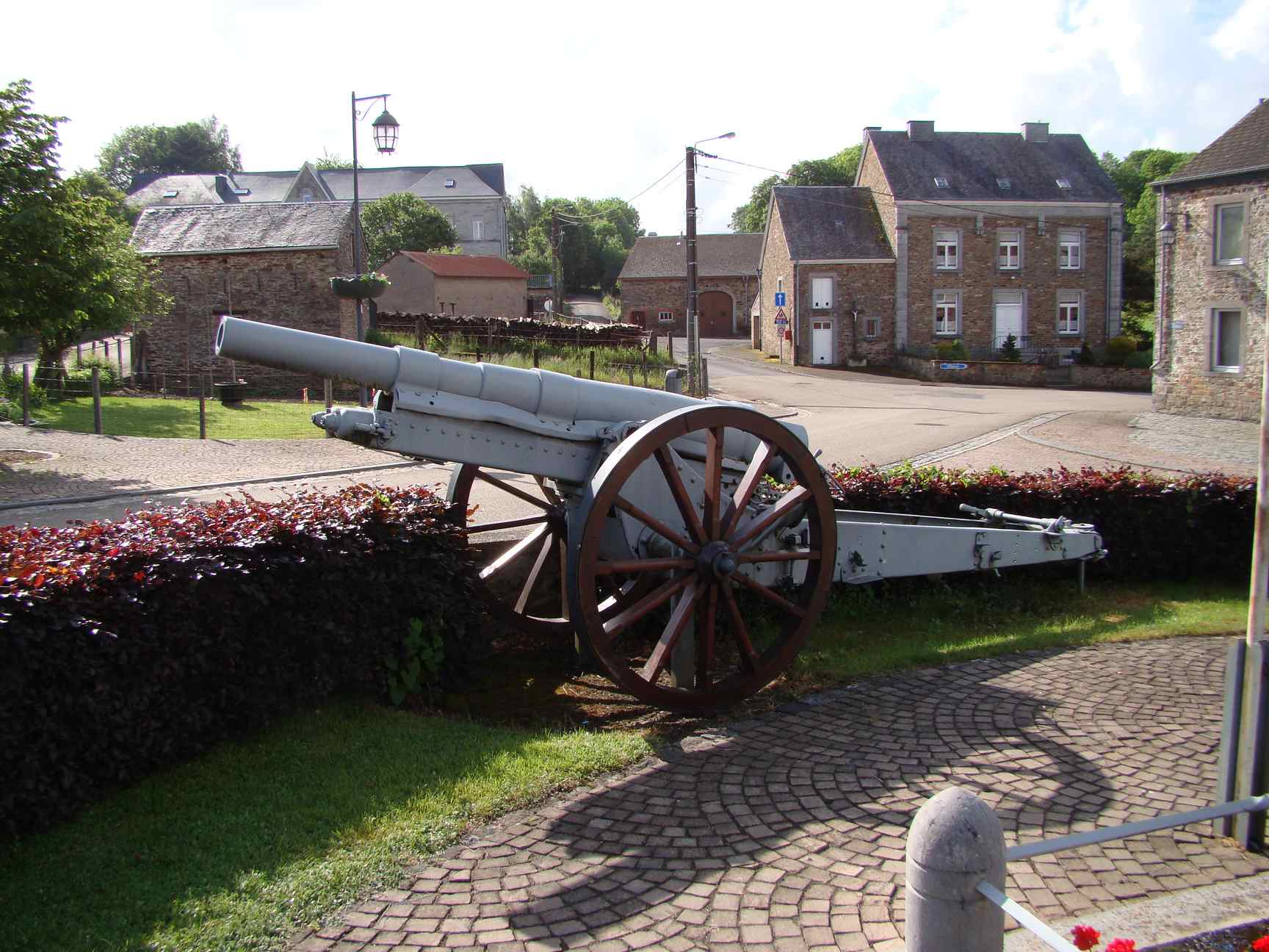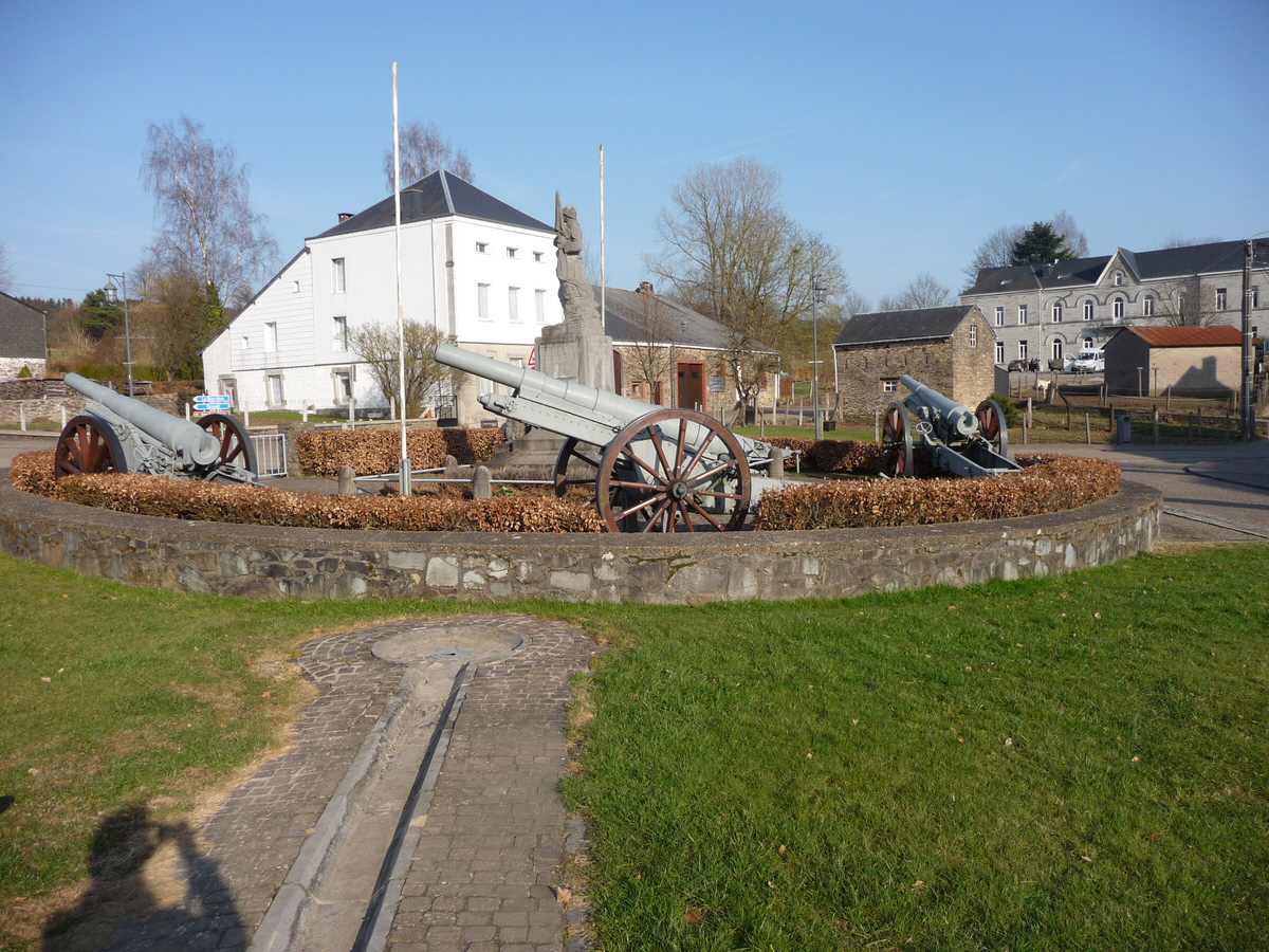 An exceptionnal battery of four 10cm K04 cannons are guarding this small and peaceful Belgian Ardennes village monument since 1922, when they have been sent by train from the town of Huy to the station of Poix St Hubert, then trailed to their final destination. These four guns are a good illustration of the continuous production of this 'old' gun throughout the war.