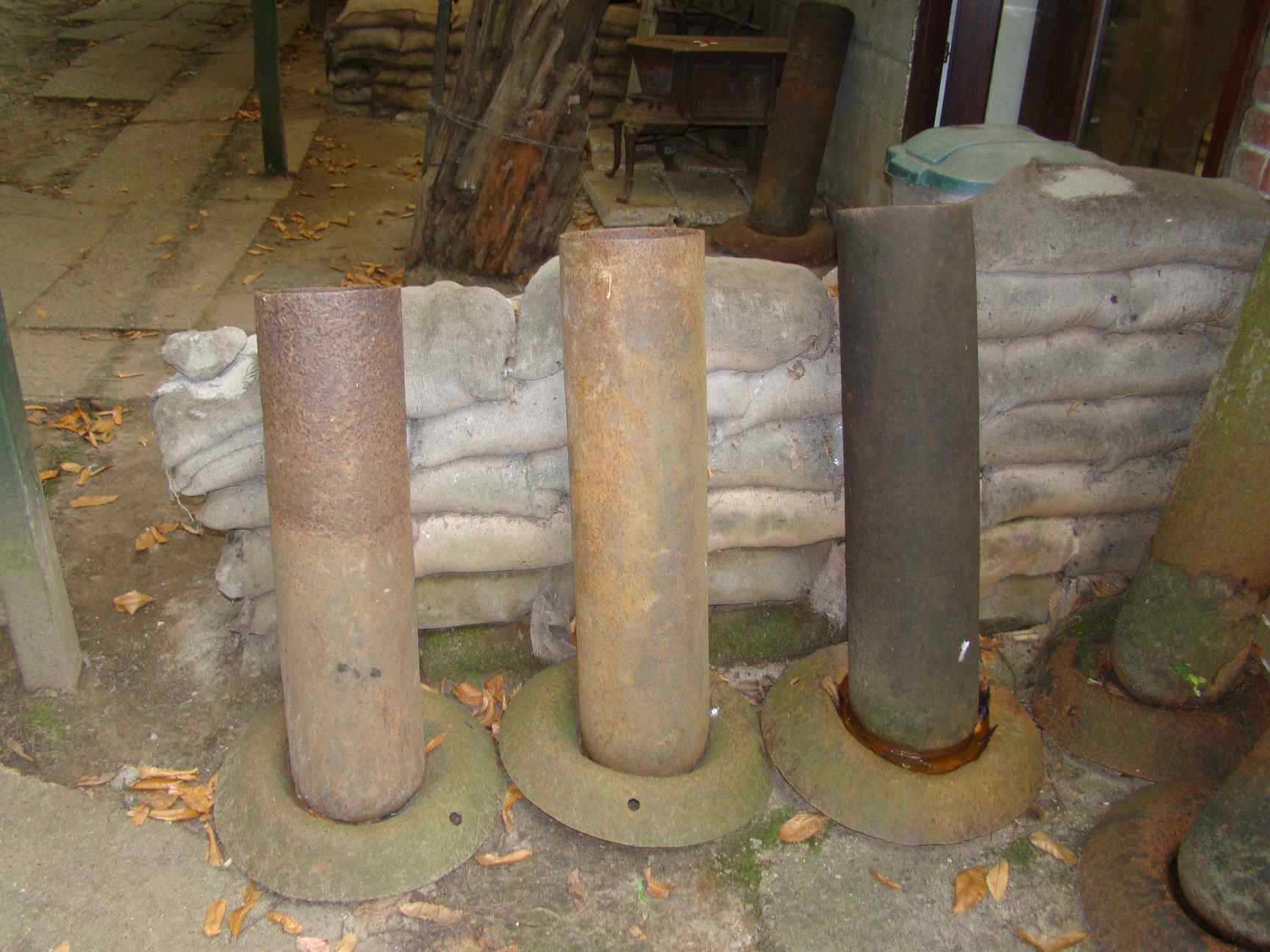 Several projectors seemingly of different lengths but in a quite bad condition are stored outside this museum.