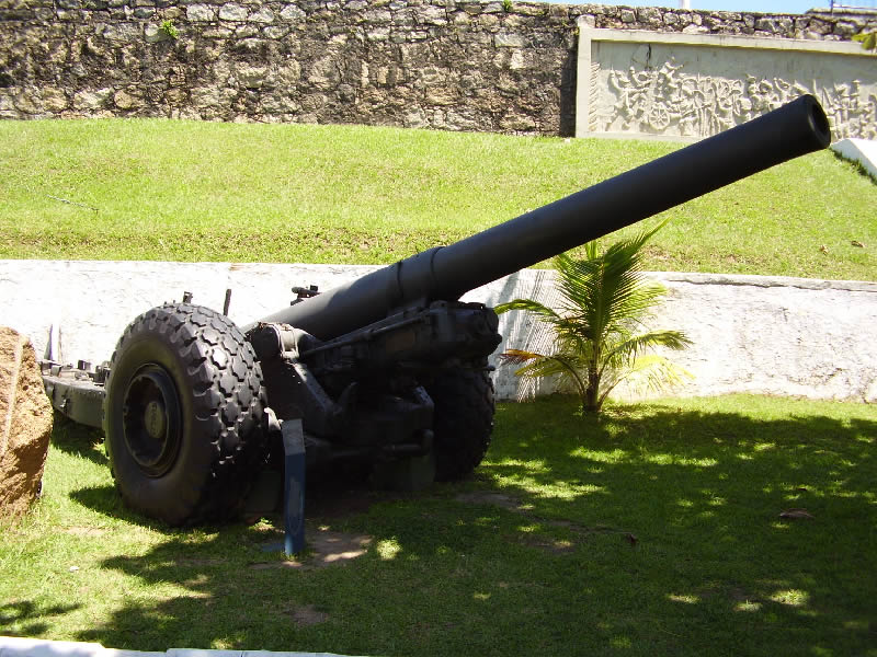 This gun has been equipped with pneumatic tires that are not corresponding to the WW1, and was obviously in service until recently.