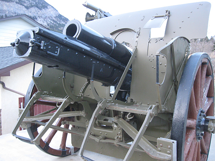 This howitzer is a part of an external Memorial in Frank since 1920, and was renovated in 2001. It is surrounded by two German MG08 machineguns (replica barrel, but original carriage)