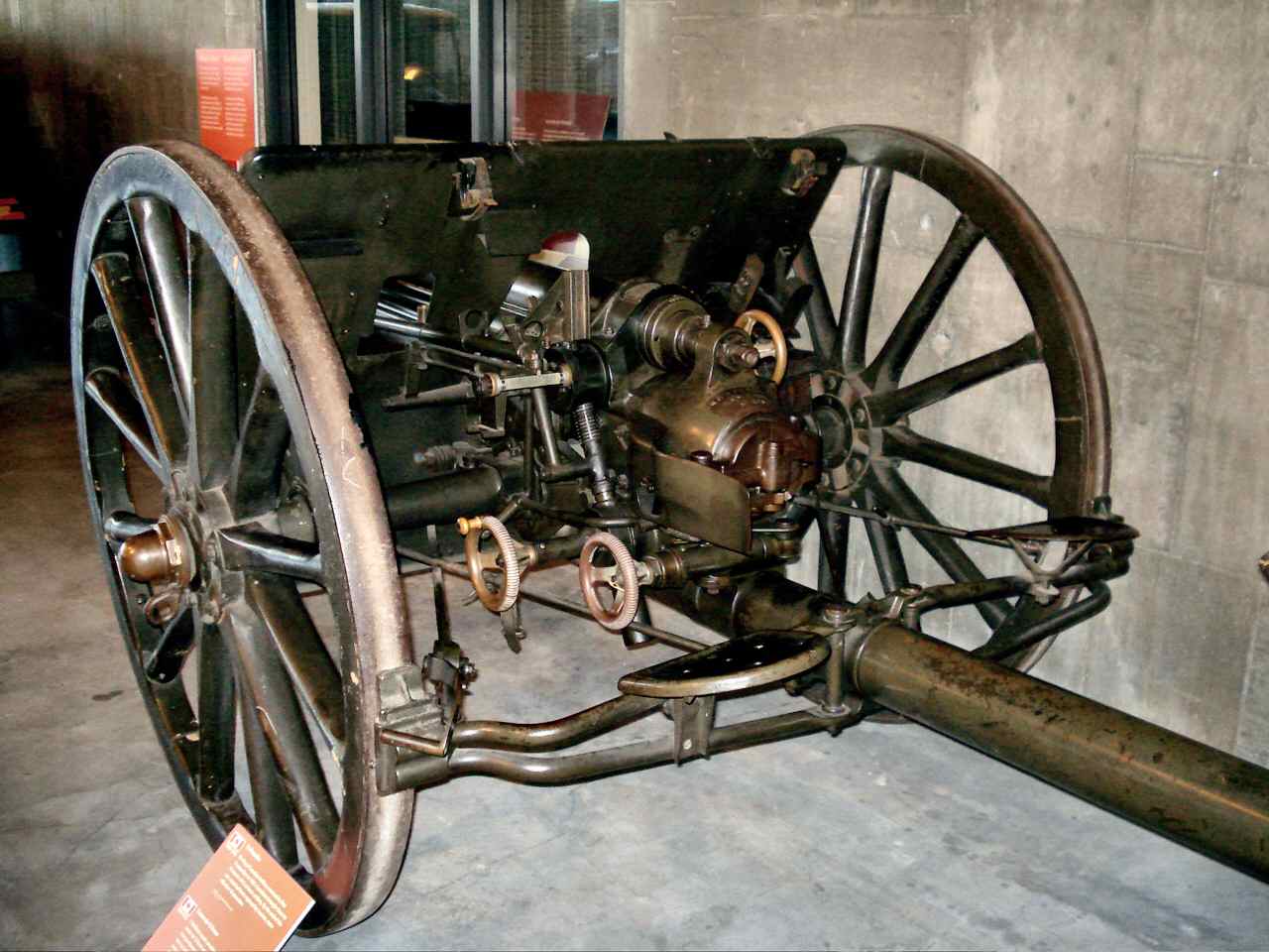 This gun equipped the different armies of the British Empire, including Canada. See the recuperator mounted on the top of the tube.