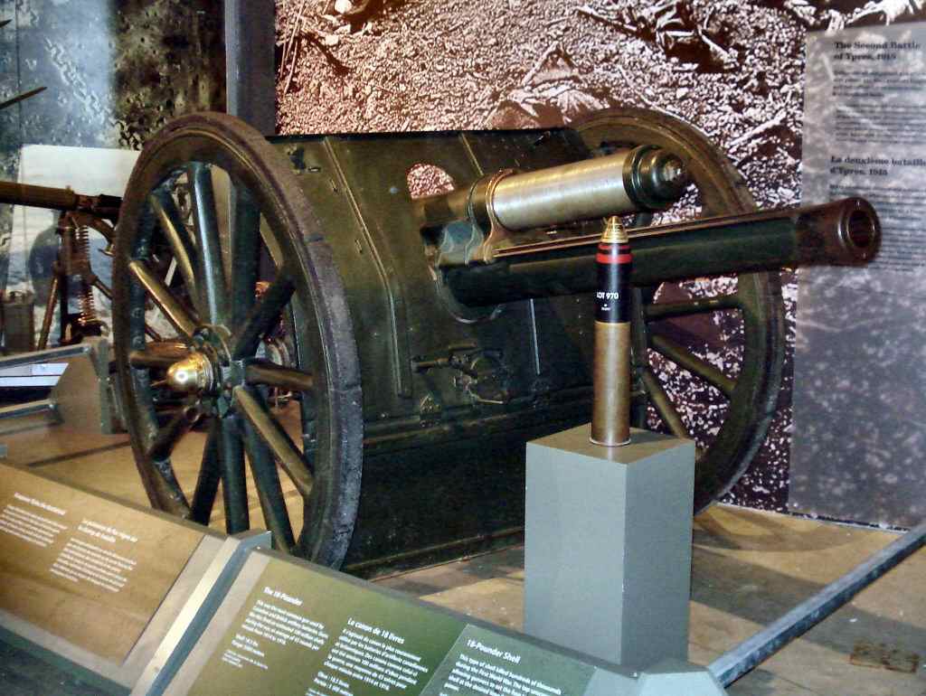 Second gun born from a British Army technical specification inspired from 15-pdr Erhardt fieldguns bought in 1900, the 18 pounder gun planned for a Field Artillery usage was the fruit of a collaboration between Armstrong (tube), Vickers (craddle), et Royal Ordnance Factories (carriage).