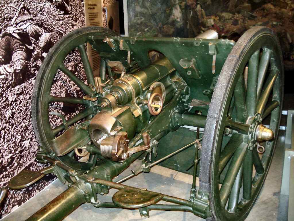 The range issue could only be solved (7132 m) by digging in the tail end into the ground, before it was finally fixed thanks to the substitution of the pole trail with a polygonal one on the Mk IV on Mk III carriage version (that was indeed a brand new gun that only participated in the late battles in small quantities).The Mk I carriage hydro-spring recuperator weakness was fixed during the war by the addition of a oil reservoir box at the front end of the cylinder, then by its substitution with a new hydro-pneumatic system on the Mk II carriage (that gave to the break front end a characteristic torpedo-like shape).