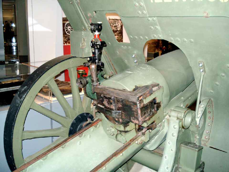 The Schneider '122mm M 1910' howitzer designed for Russia owned the main characteristics of the most modern equipments available in the first decade of the XXth century as seen by the talenteous Schneider engineers : hydro-pneumatic recoil recuperating system, quick action breech opening system, shield, box trail, etc... it was also recognizable with the long rear cradle typical of the Schneider materials and allowing a good balance of the tube0de cette époque, qui permettait un équilibrage de l'ensemble tube / recoil system / cradle around the trunions that were placed close to the breech block.