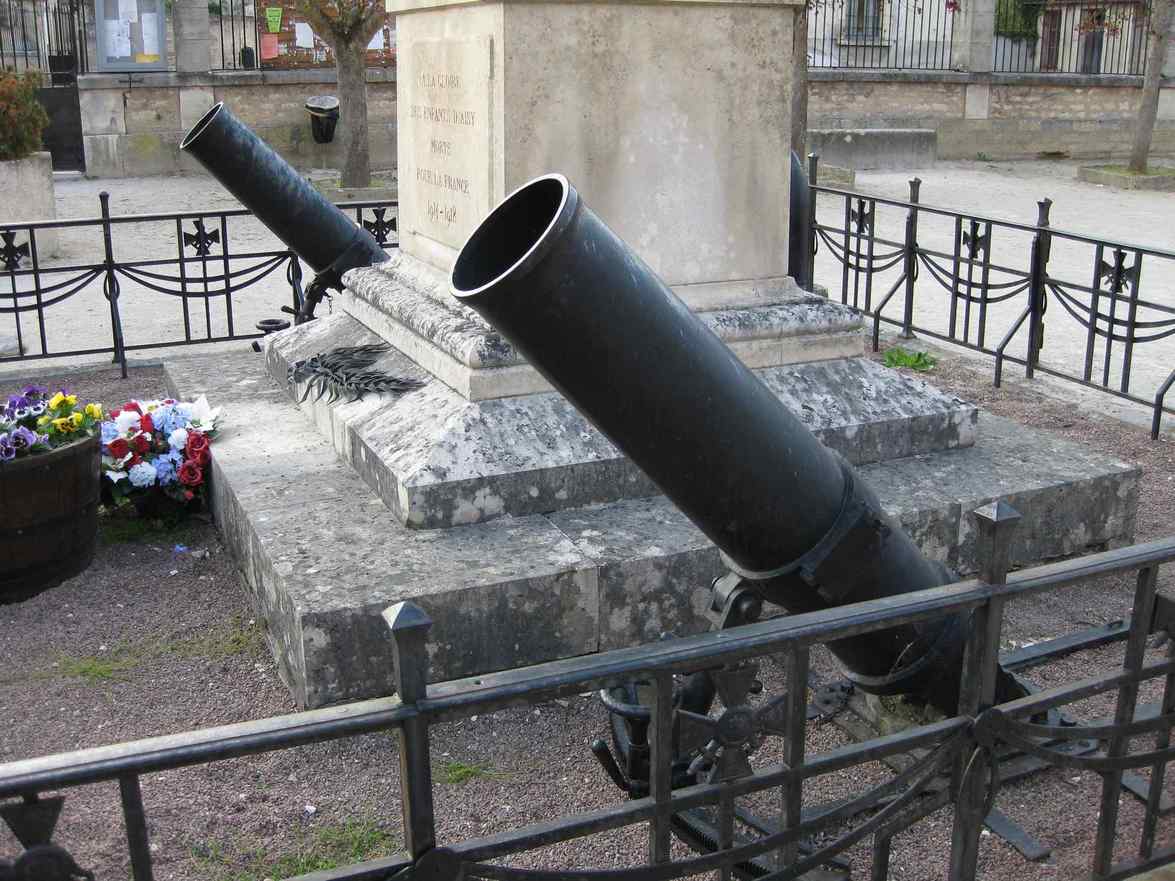 Two identical mortars at the side of this War Memorial. Markings : ' N 1174 - H38 - 1917 - 4102 - L60 1' and 'N 2173 - H20 - 1917 - 2173'